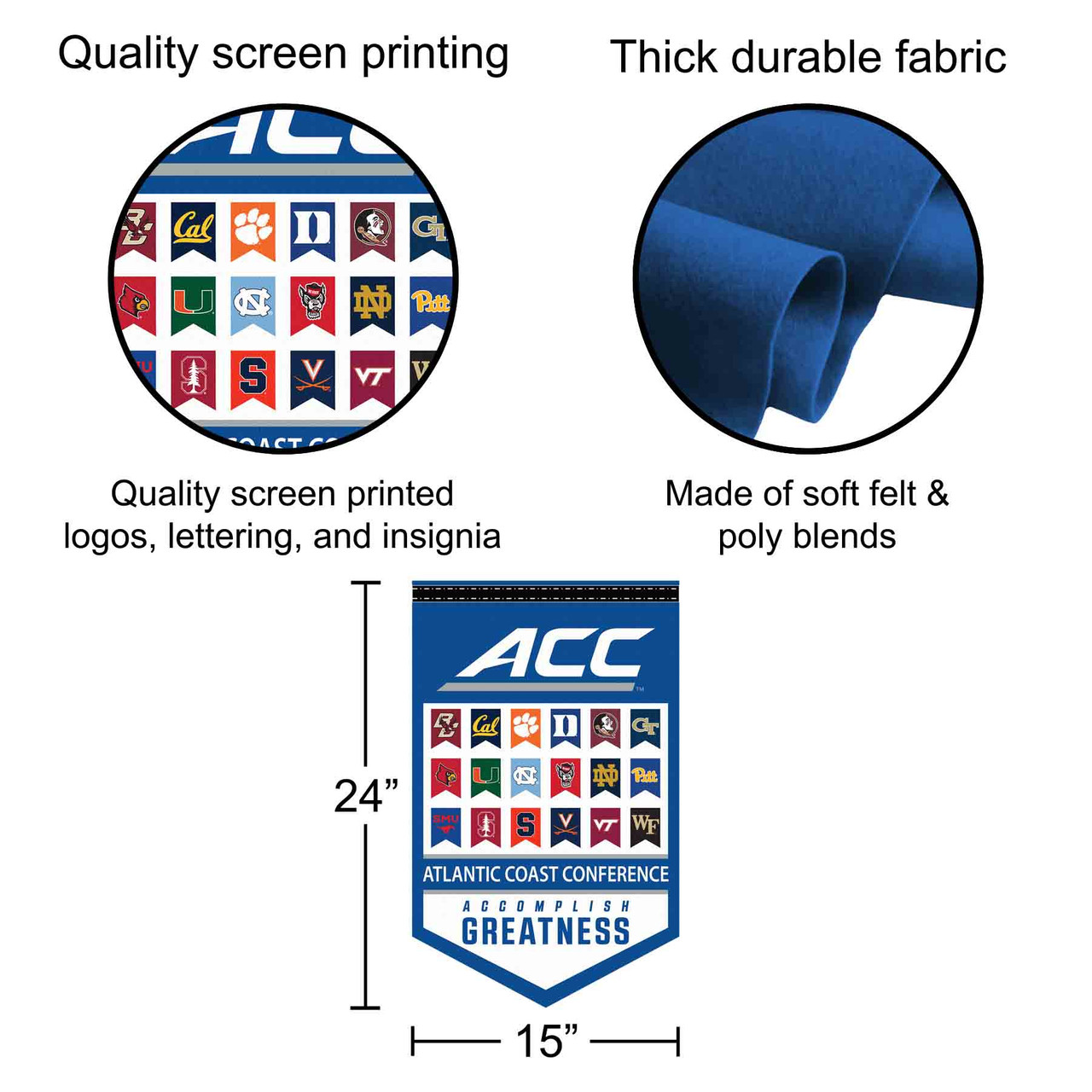 - 15 inch (wide) x 24 inch (height) Soft Felt Team Banner