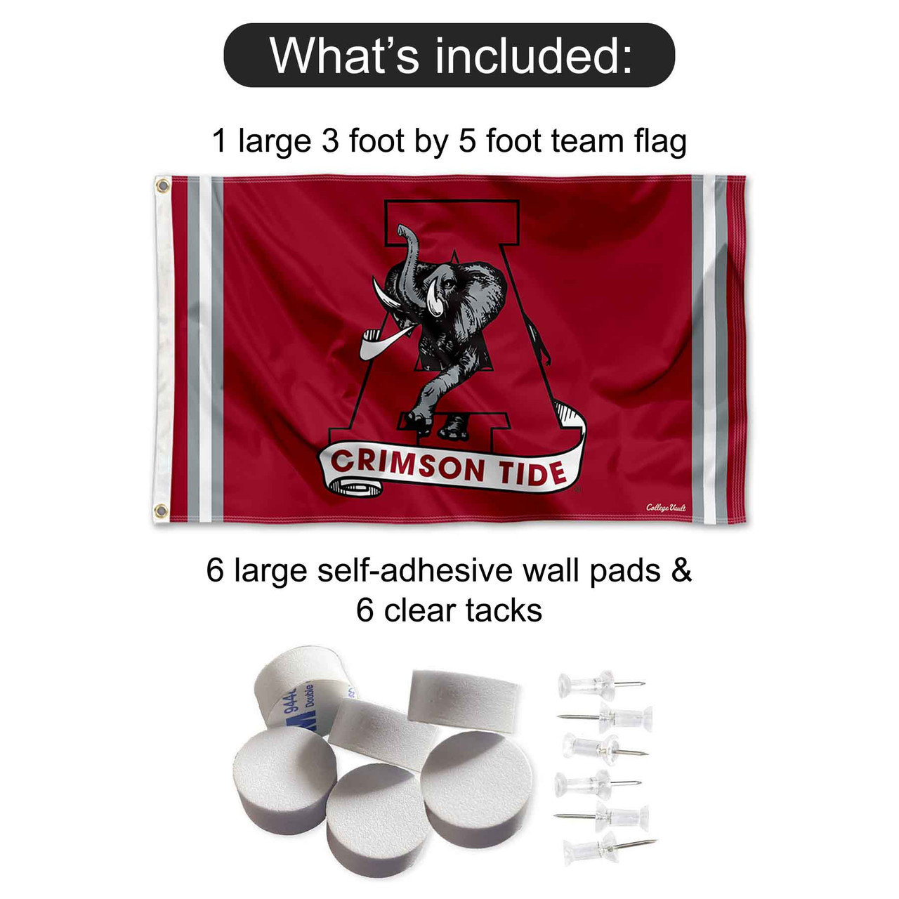 Alabama Crimson Tide Retro Flag with Tack Wall Pads