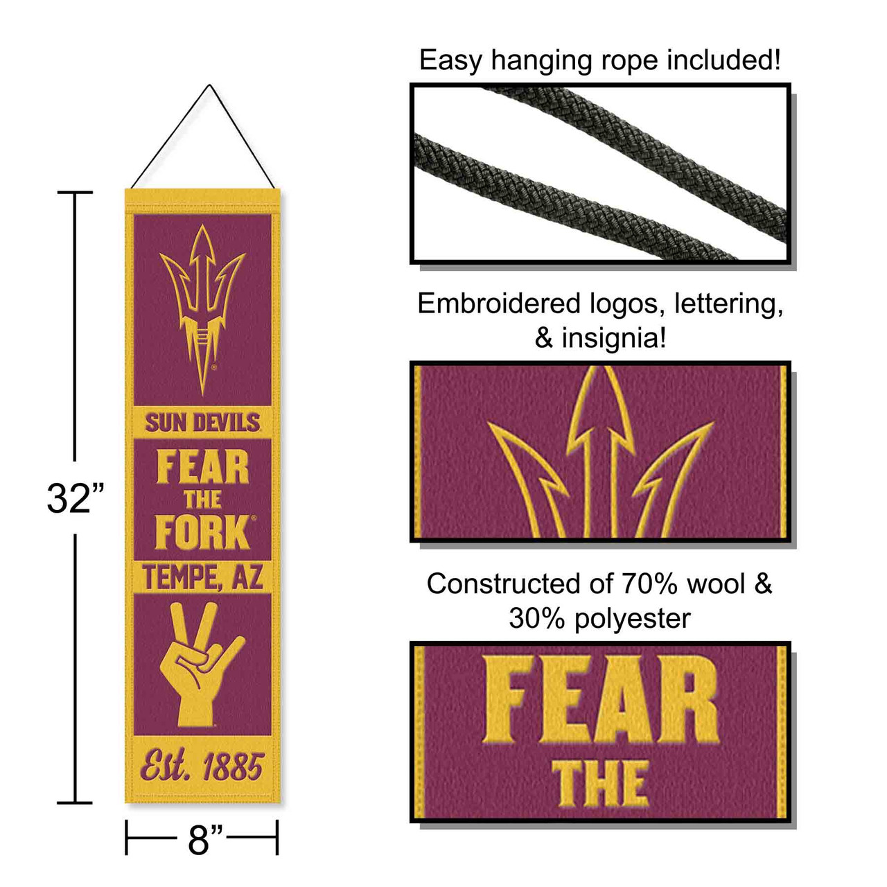 Arizona State University Sun Devils Evolution 8x32 Inch Vertical Wool Embroidered Hanging Banner