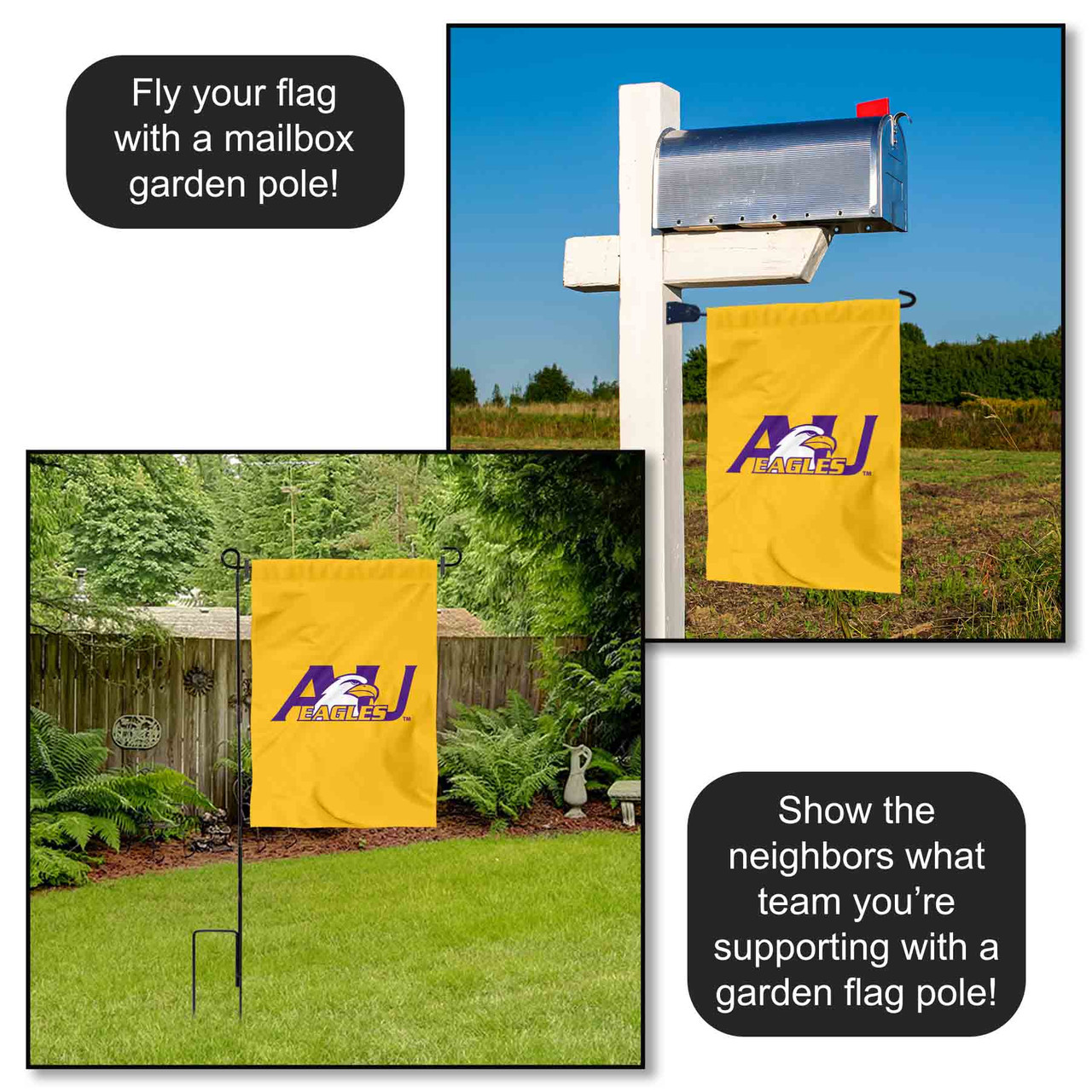 Ideal for your garden or home entrance is our garden banner flag. This double sided Garden Flag measures a large 13 in x 18 in, has a Double Stitched border, a 1 inch top sleeve, and is made of 2 ply Polyester so the logos are Viewable and Readable Correctly on Both Sides. The Screen Printed college logos are Officially Licensed and Approved by the League and school. (Flag Only, Garden Stand and Accessories Sold Separately)