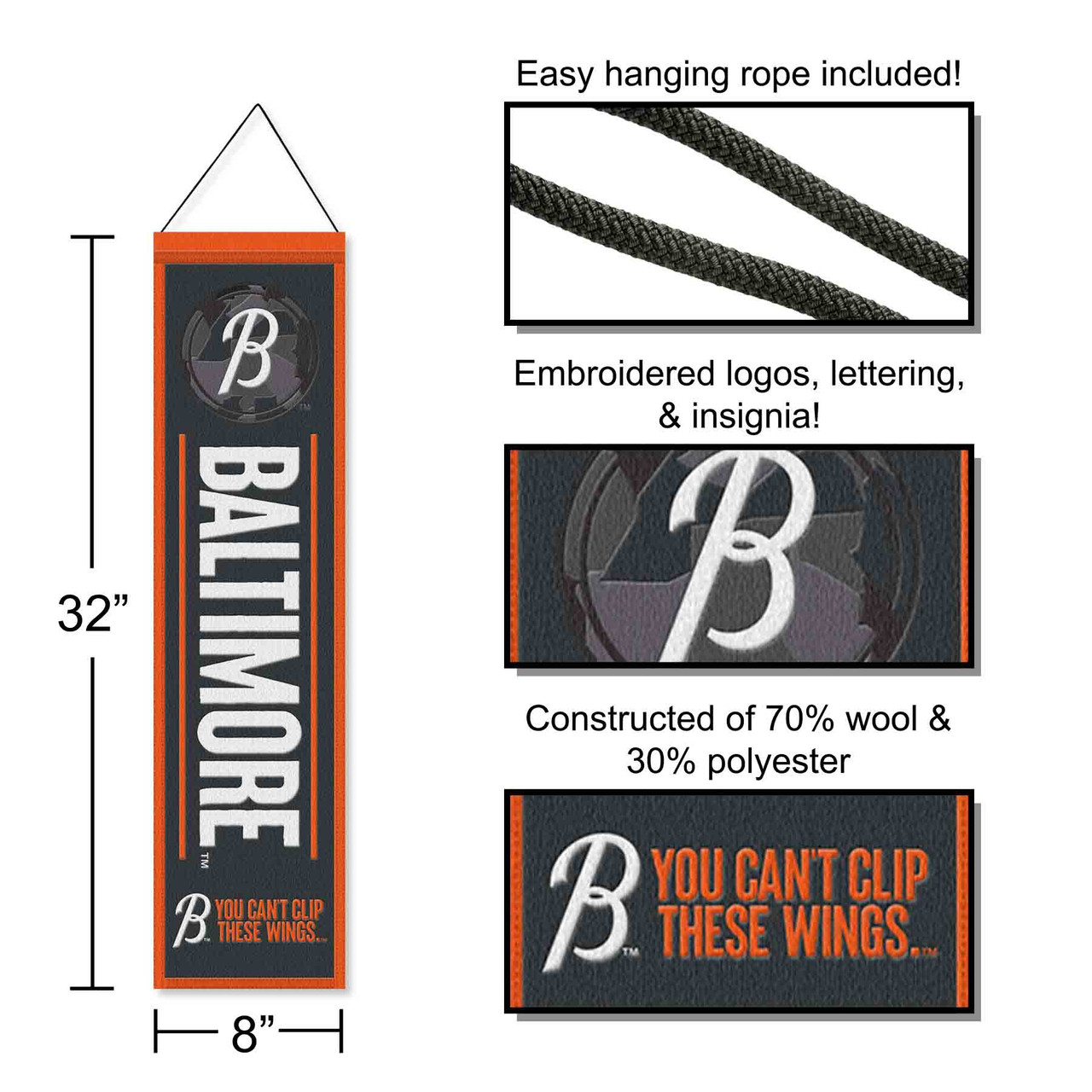 Baltimore Orioles City Edition 8x32 Inch Vertical Wool Embroidered Hanging Banner