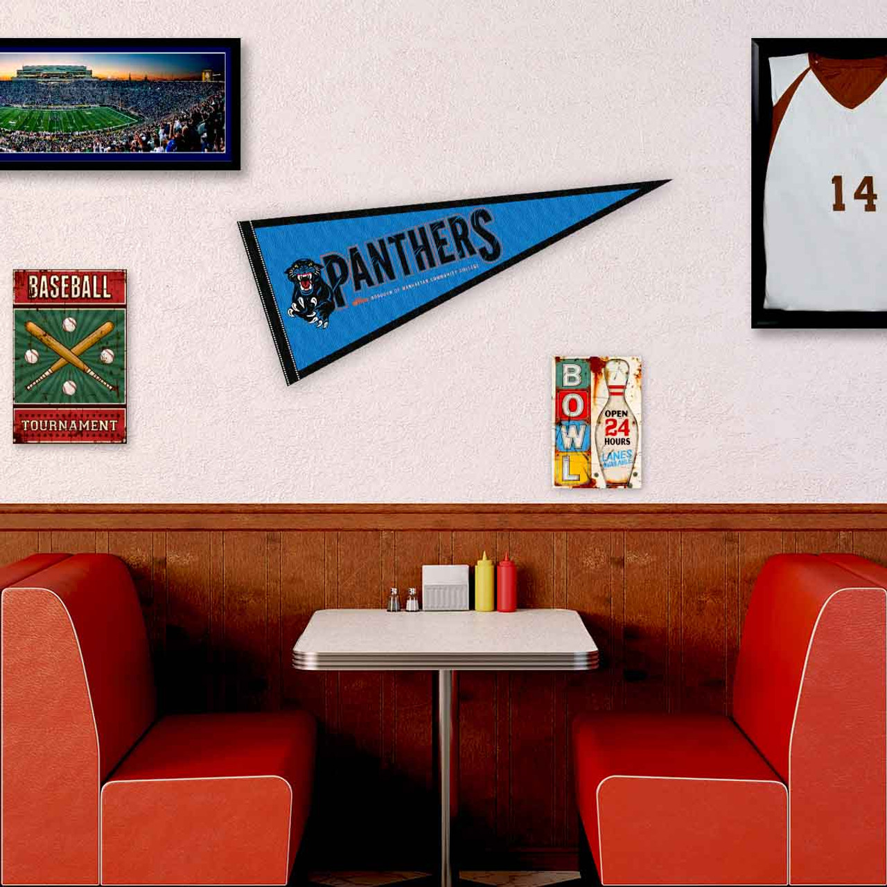 Our Flag, Banner or Pennant is a great way to show your college allegiance in your sports room, game room, office, bedroom, or any room by displaying as a wall banner. These pennants measure 12 in X 30 in, are made of Felt, and are single-sided Screen Printed with BMCC Panthers insignias and logos. Each Flag, Banner or Pennant is Officially Licensed and Team, College, or University Approved approved which insures current insignias, wordmarks, and authentic colors. These pennants also include a sewn pennant stick sleeve on the left side which can be used to insert a pennant stick, if desired.