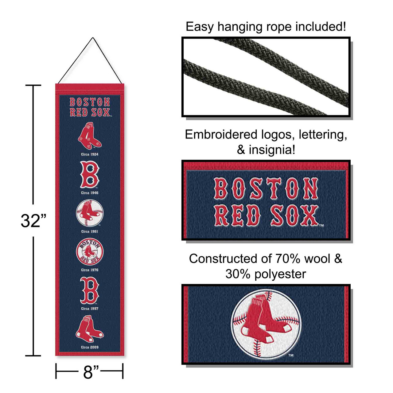 Boston Red Sox Evolution 8x32 Inch Vertical Wool Embroidered Hanging Banner