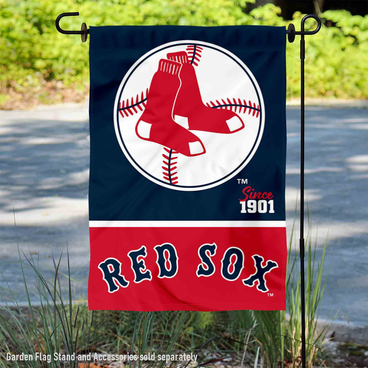 Perfect for your garden, home entrance, or as a wall banner is our Flag, Banner or Pennant. This double sided League Garden Flag measures a large 12.5 in x 18 in, has a Double Stitched border, a 1.5 inch top sleeve, and is made of 2 ply Polyester with sewn-in liner so the logos are Viewable and Readable Correctly on Both Sides. The Screen Printed Boston Red Sox logos are League Officially Licensed by Team and Approved by the Team, College, or University. (Flag Only, Accessories Sold Separately)