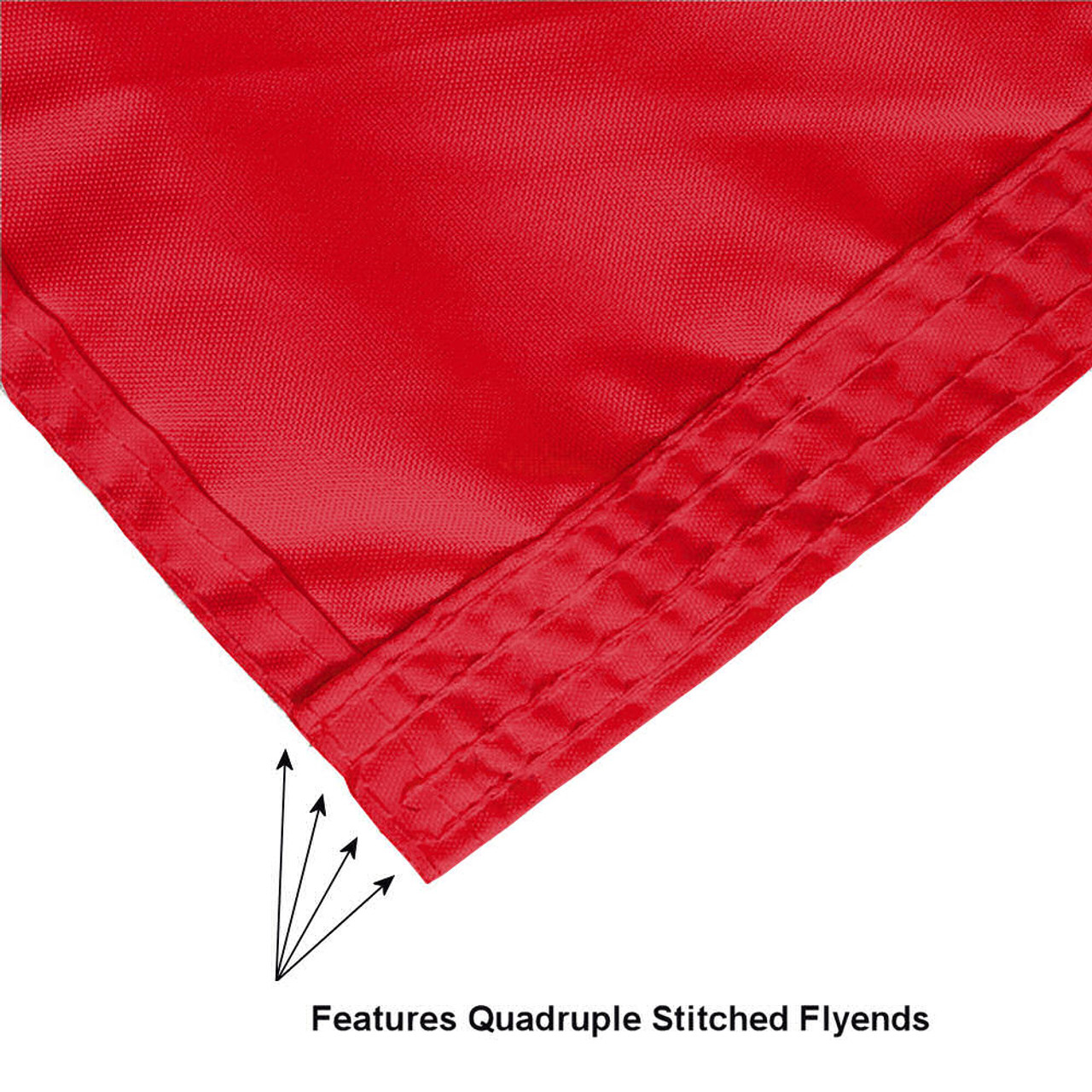- Flag is made of 1-Ply 100% Polyester, has Quad-Stitched Flyends, and Screen Printed Logos (opposite side is reverse image)