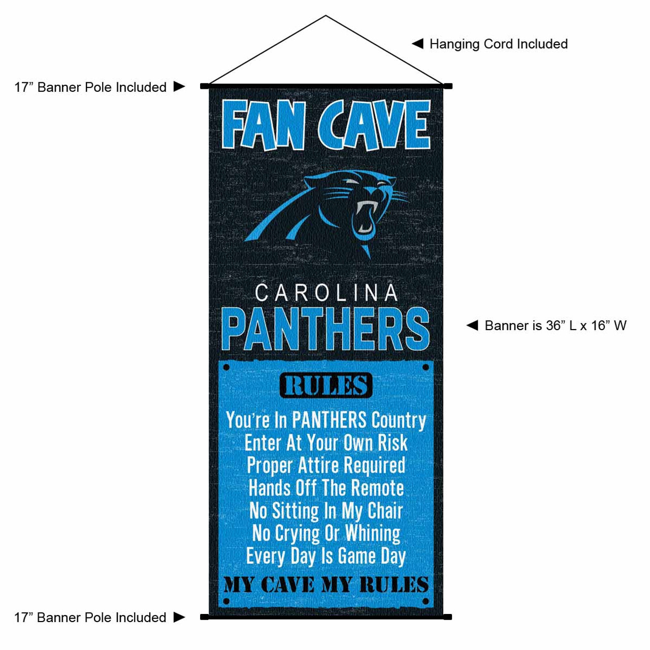 - Fan Cave Banner is Made of 100% Thick Polyester, overall dimensions of 17.5" Wide by 36" Length, 300d Thickness, Imported