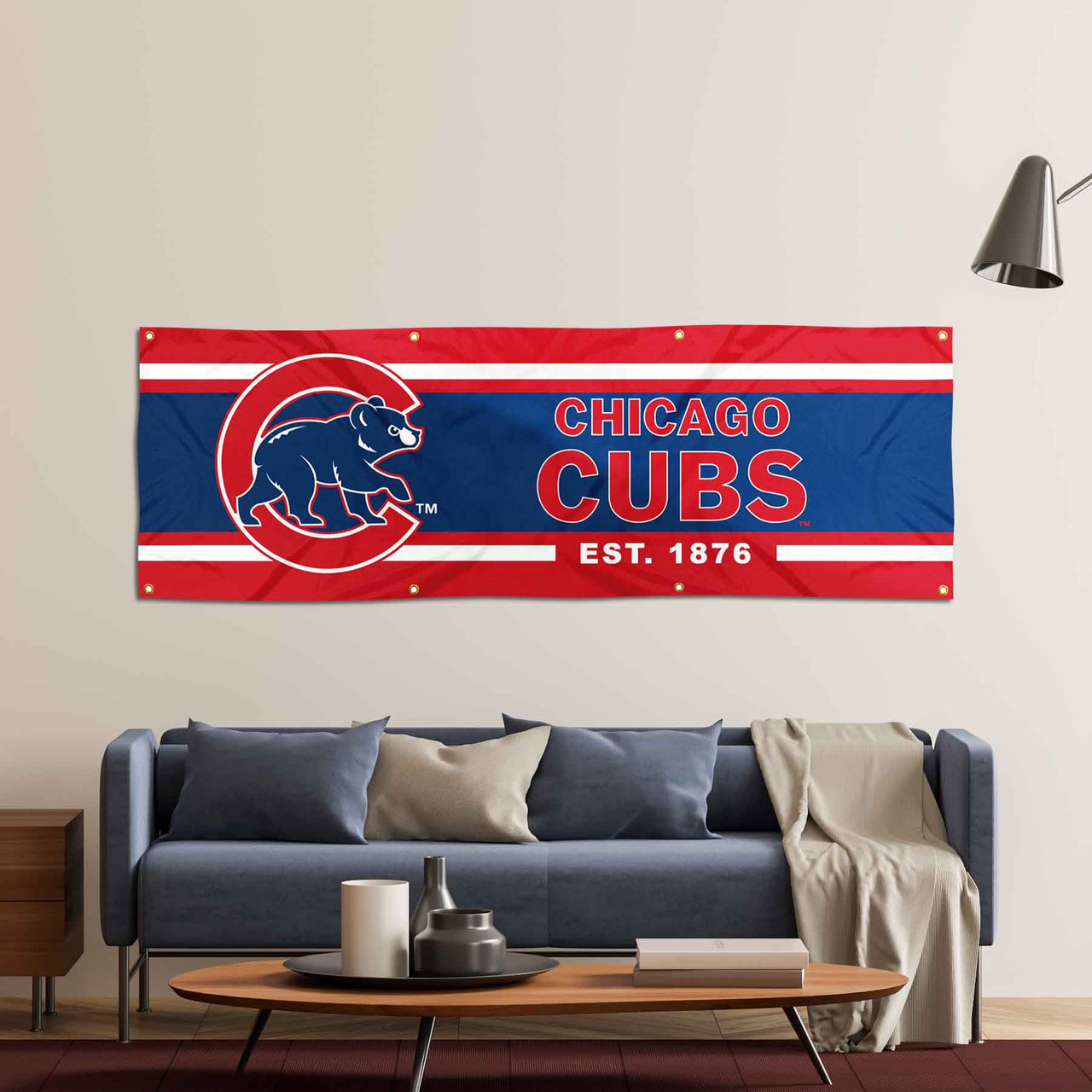 Our Large Banner measures 2 ft x 6 ft in Size, has a Double Stitched Perimeter, is made of 300d Polyester, and has 8 perimeter grommets for easy hanging. These large sports team banners are team approved and the Screen Printed logos, lettering, and insignia are Viewable from One Side.