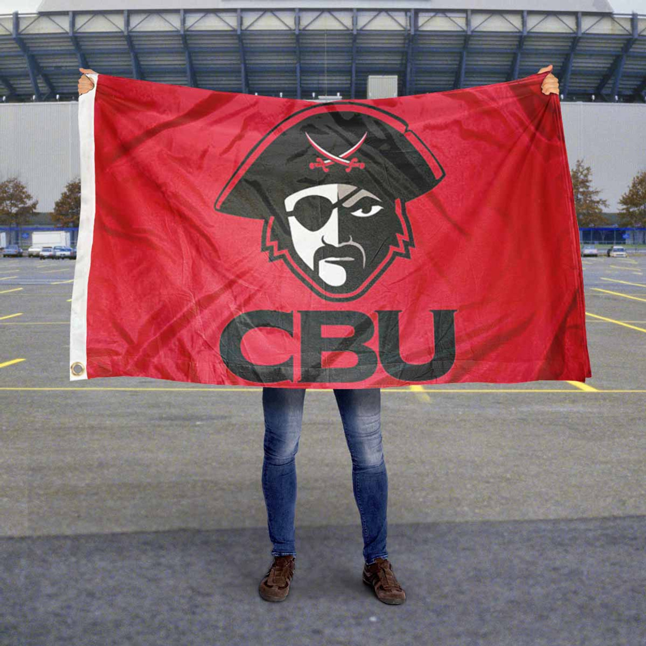 This Flag, Banner or Pennant measures 3 ft x 5 ft in size, has Quadruple Stitched fly ends, is made of durable Nylon, and has two Metal Grommets for attaching to your flagpole. The Screen Printed CBU Buccaneers logos are Officially Licensed and College, University, or Team Approved and are Viewable from Both Sides (Opposite Side is a Reverse Image).