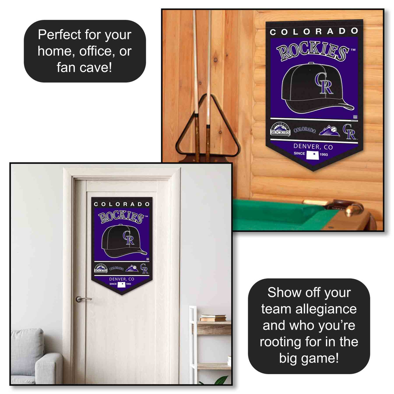 Our sports banner flag is an easy way to show your team allegiance in your sports room, game room, man cave, office, bedroom, or any room by displaying on any wall. These banners measure 15x24 inches, are made of soft poly felt, and are single-sided screen printed with the team insignias, heritage logos, and logos, as shown. Each banner is Officially Licensed by the selected team which insures correct insignias, wordmarks, and authentic team colors.