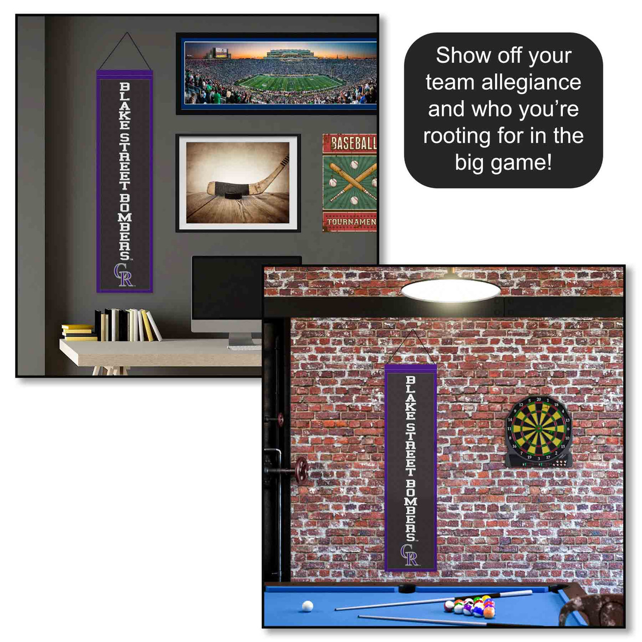 Our premium wool banner is a quality collectible and is a unique way to display your team allegiance in your fan cave, office, kids bedroom, or on any wall. These team banner flags measure a full size 32 inch X 8 inches, are made of thick wool and polyester blends, and are single-sided embroidered and stitched with team insignias and logos. Each premium wool banner is team, college, or university approved which ensures current insignias, wordmarks, and authentic colors. These wool banners also include a rope for easy hanging and displaying on any wall.