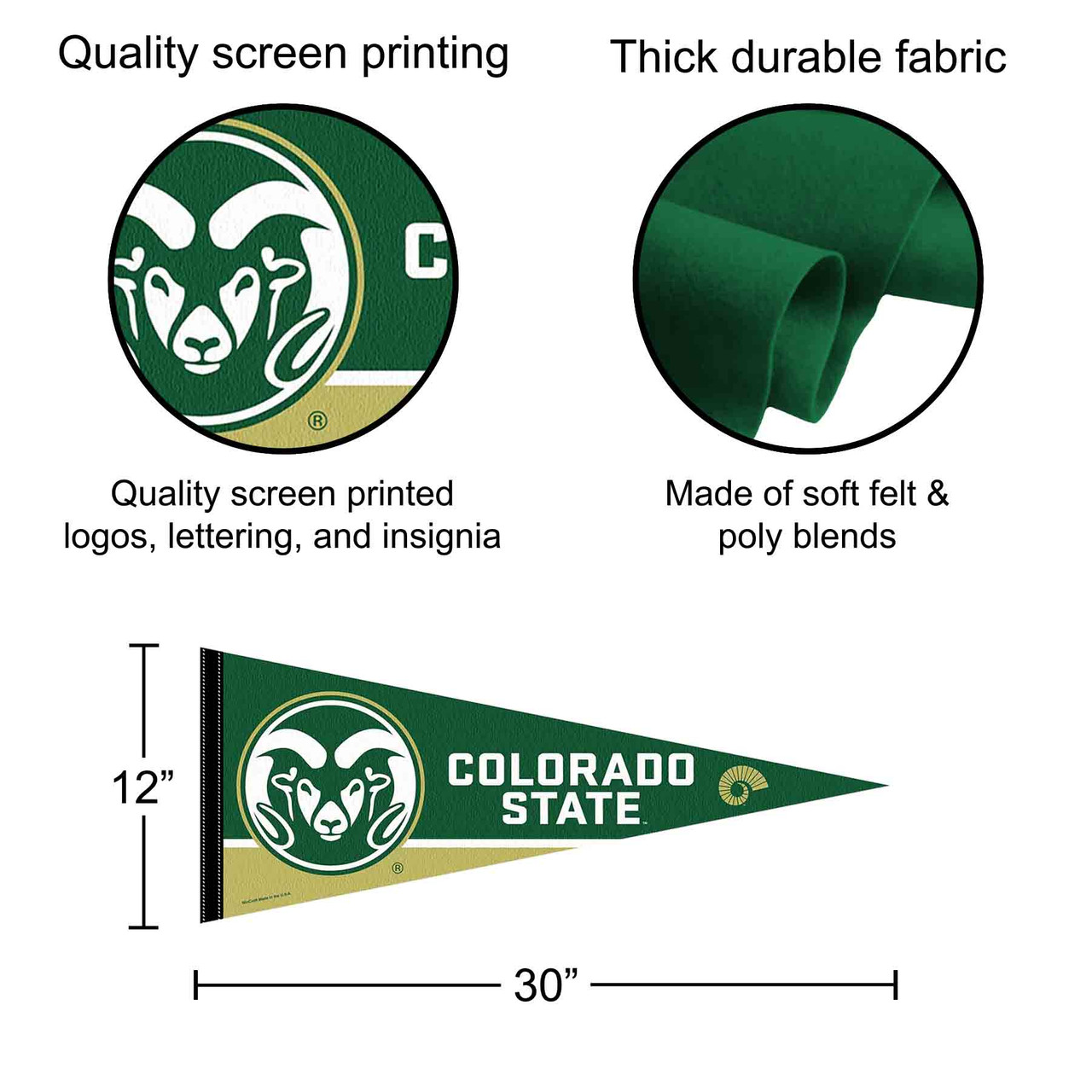 - Pennant Banner is made of soft felt blends with Sewn Pennant Stick Sleeve and is Single-Sided Screen Printed