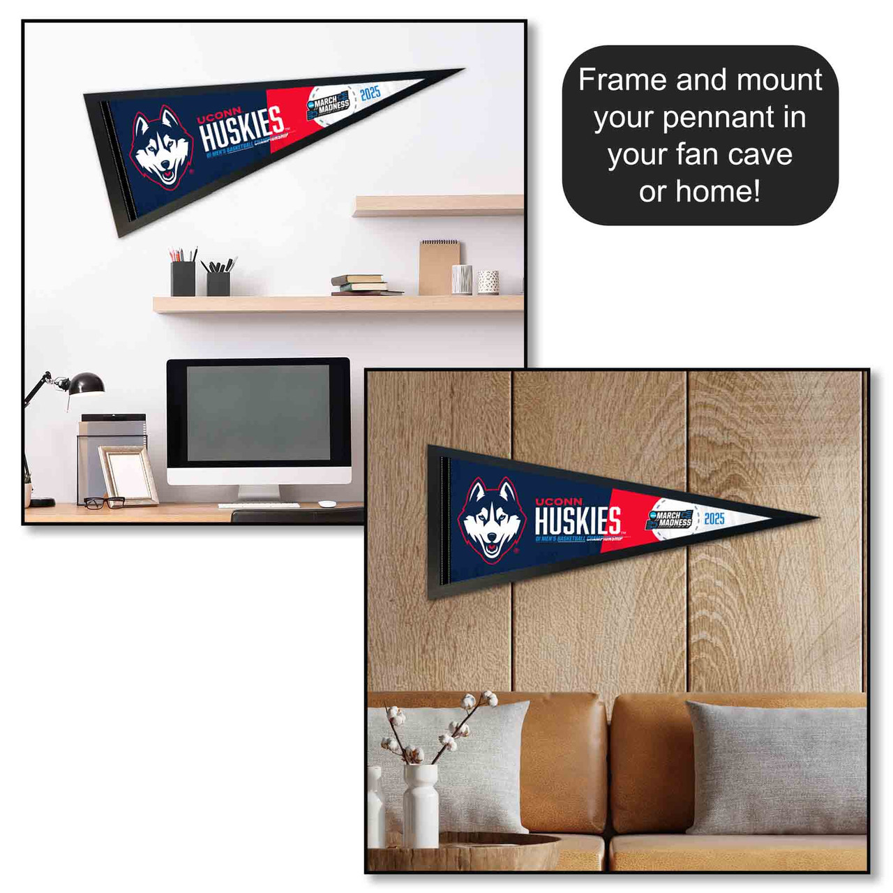 Our Pennant Flag is a great way to show your college allegiance in your sports room, game room, office, bedroom, or any room by displaying as a wall banner. These pennants measure 12 in X 30 in, are made of Felt, and are single-sided Screen Printed with Huskies insignias and logos. Each Flag, Banner or Pennant is Officially Licensed and Team, College, or University Approved approved which insures current insignias, wordmarks, and authentic colors. These pennants also include a sewn pennant stick sleeve on the left side which can be used to insert a pennant stick, if desired.