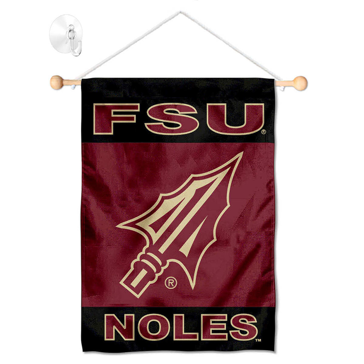 This Flag, Banner or Pennant includes a 13x18 inch mini banner flag, small wood banner pole which is 17 inches in length and 3/8 inch in diameter, cut to size display rope, and 1.75 inch sturdy suction cup. The small banner flag is made of 2-ply 100% polyester with sewn-in liner and screen printed logos which are viewable and readable correctly on both sides. This college banner is ready to hang and offers easy setup by connecting each 1/2 of the removable banner pole within the sleeve of the banner. This item can be used indoors or outdoors and is ideal for displaying at your house entrance, windows, mirrors, refrigerator, or any wall of your home or office. Each of these banner flags are Officially Licensed by the selected university and approved. The Flag is Officially Licensed and Team, College, or University Approved Approved.