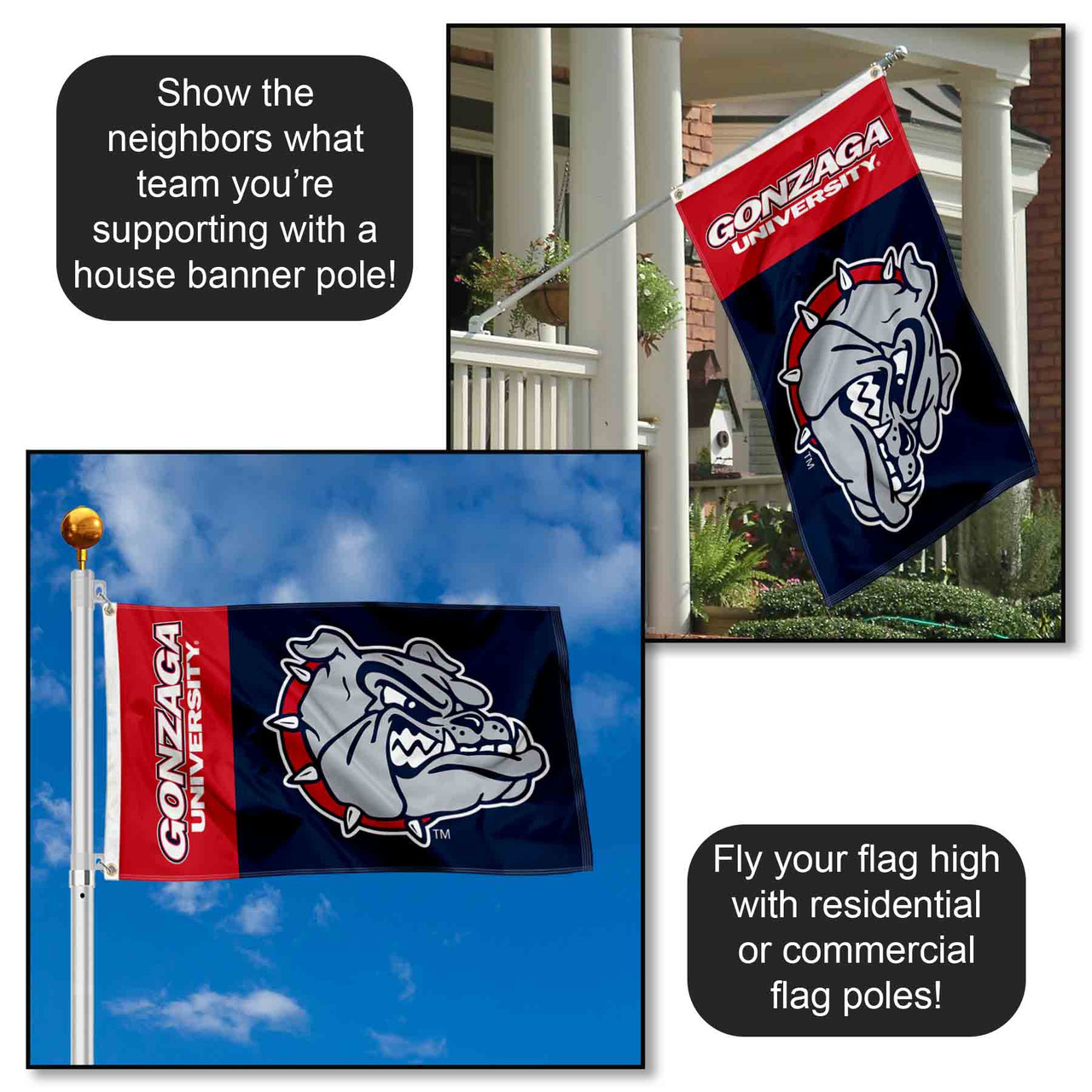This outdoor grommet banner flag measures 3 ft x 5 ft in size, has Quadruple Stitched fly ends, is made of durable Polyester, and has two Metal Grommets for attaching to your flagpole, tailgating flag pole, or for hanging as a large banner. The Screen Printed team logos are Officially Licensed and University approved. The printed insignia are Viewable from Both Sides (Opposite Side is a Reverse Image). Poles, Brackets, and Accessories sold separately.