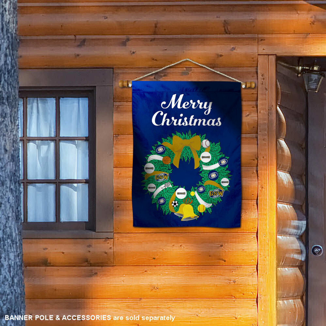 This Flag, Banner or Pennant measures 30 in x 40 in in size, has a Double Stitched Perimeter, is made of Single-Ply Polyester, and has a top pole sleeve to slide your flagpole or banner pole. These banner flags are Officially Licensed and Team, College, or University Approved approved. This flag is made of 1-ply so the dye sublimated logos are Viewable on Both Sides (Opposite Side is a Reverse Image). A unique Holiday gift, this banner can also be displayed as a wall banner.