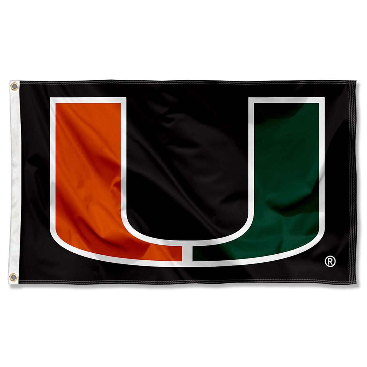 This Flag, Banner, or Pennant measures 3 ft x 5 ft in size, has Quadruple Stitched fly ends, is made of 150D Polyester, and has two Metal Grommets for attaching to your flagpole or tailgating flag pole. The Screen Printed Miami Canes Championship logos are Officially Licensed by Sewing Concepts, Inc. and Officially Licensed and College, University, or Team Approved. The champs team logos, words, and insignia are Viewable from Both Sides (Opposite Side is a Reverse Image).