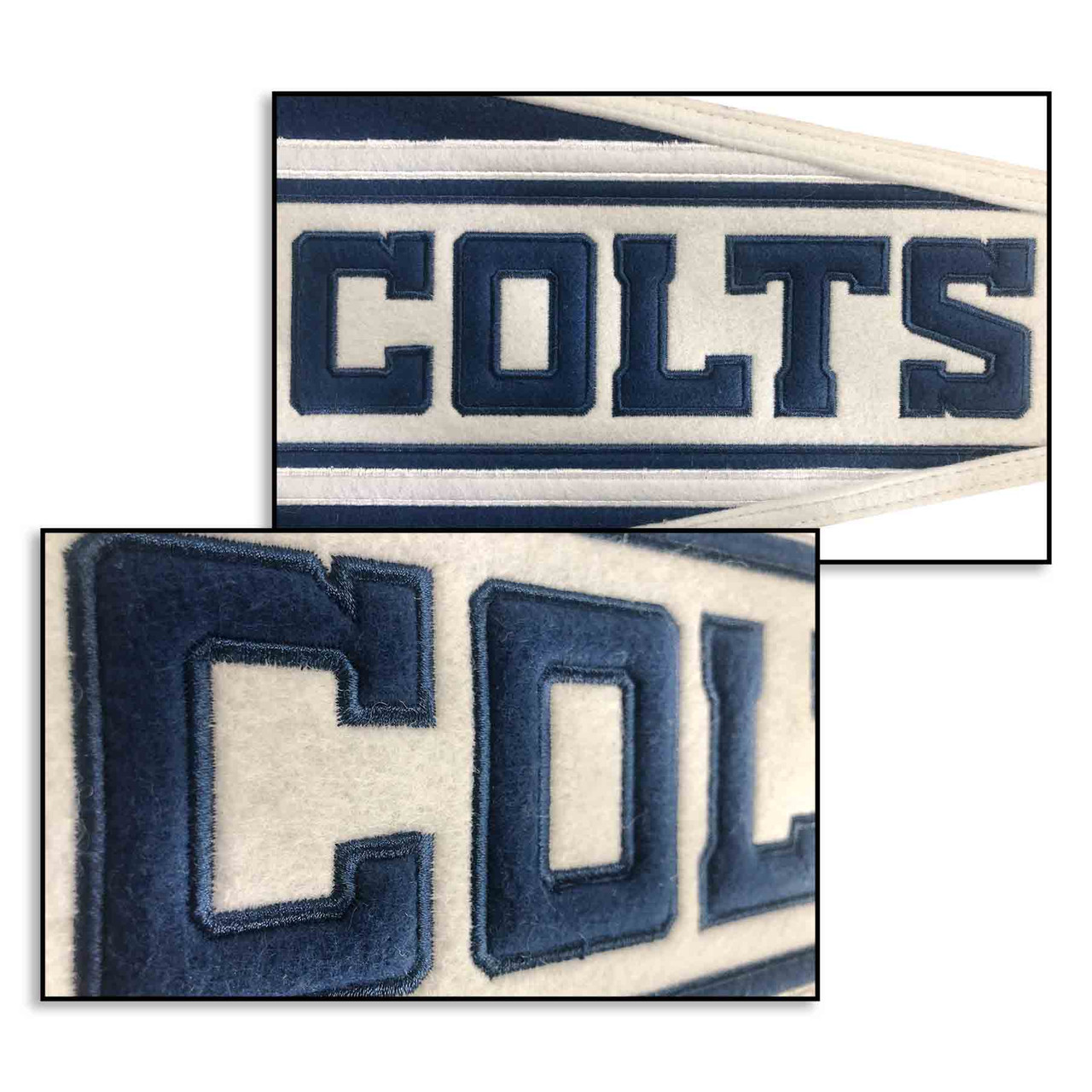 Our Pennant is a quality collectible and is a unique way to display your team allegiance as a banner in your game room, office, kids bedroom, or on any wall. These team pennants measure a full size 12 in X 30 in, are made of Thick Wool, and are single-sided Embroidered and Stitched with Licensed insignias and logos, as shown. Each Wool Pennant is Officially Licensed and is Team, College, or University Approved which insures current insignias, wordmarks, and authentic colors. These pennants also include a sewn strip on the left side and feature a full perimeter sewn wool border.