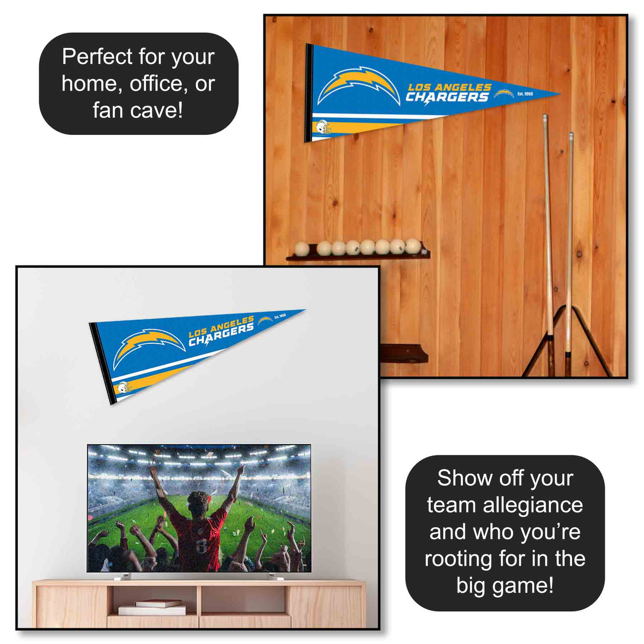 Our team pennant is a great way to show your League allegiance in your sports room, game room, office, bedroom, or any room by displaying on any wall. These flags measure a full size 12 in X 30 in, are made of Felt Blend, and are single-sided Screen Printed with the insignias and logos, as shown. Each banner is Officially Licensed by the selected team which insures current insignias, wordmarks, and authentic colors. These pennants also include a pennant sleeve on the left side which can be used to insert a pennant stick, if desired.
