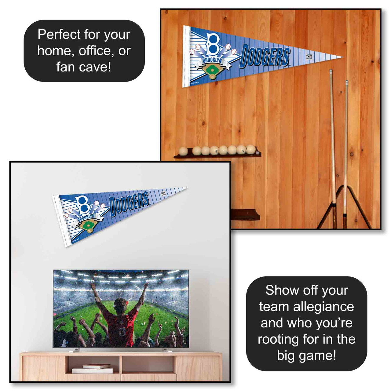 This Pennant Banner Flag is a great way to show your League allegiance in your sports room, game room, office, bedroom, or any room by displaying on any wall. These pennants measure a large 12 in X 30 in, are made of soft Felt, and are single-sided Screen Printed with the insignias and logos, as shown. Each Flag, Banner or Pennant is Officially Licensed by the selected team which insures current insignias, wordmarks, and authentic colors. The League baseball team pennants also include a pennant sleeve on the left side which can be used to insert a pennant stick, if desired.