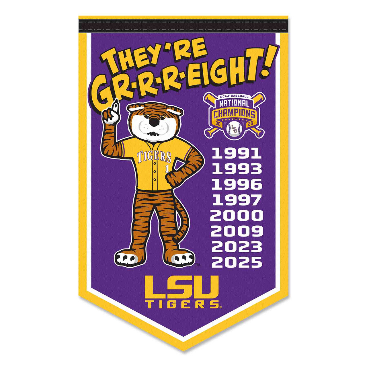 Louisiana State LSU Tigers 2025 College Baseball 8 Time National Champions Banner