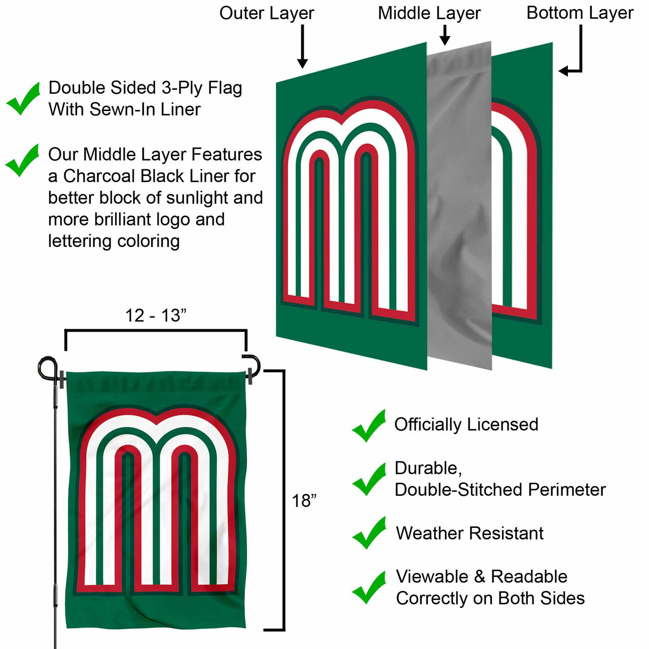Perfect for your garden or home entrance is our Flag, Banner or Pennant. This double sided Team USA Garden Flag measures a large 12 in x 18 in, has a Double Stitched border, a 1.5 inch top sleeve, and is made of 1 ply Thick Triple Spun Polyester. The Screen Printed logos are printed on both sides so the logos are Viewable and Readable Correctly on Both Sides. Also, this flag is Officially Licensed by Team USA and Approved (Flag Only, Accessories Sold Separately)