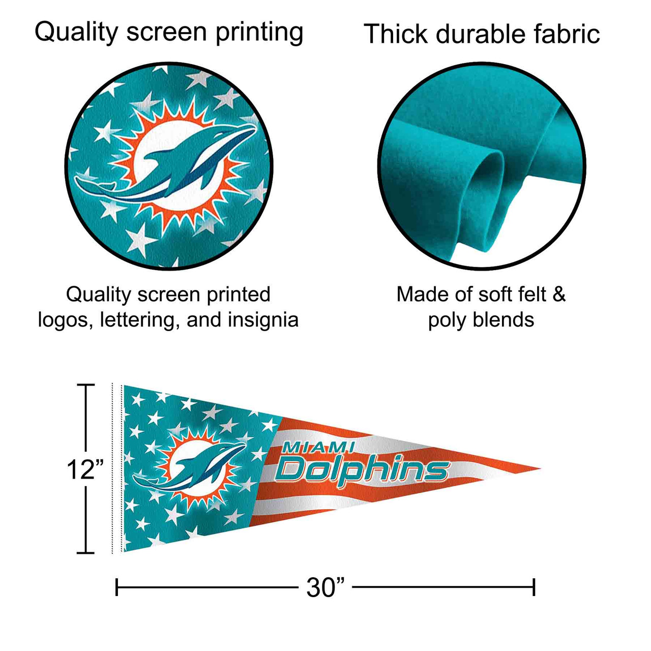Miami Dolphins Nation USA Americana Stars and Stripes Pennant Flag