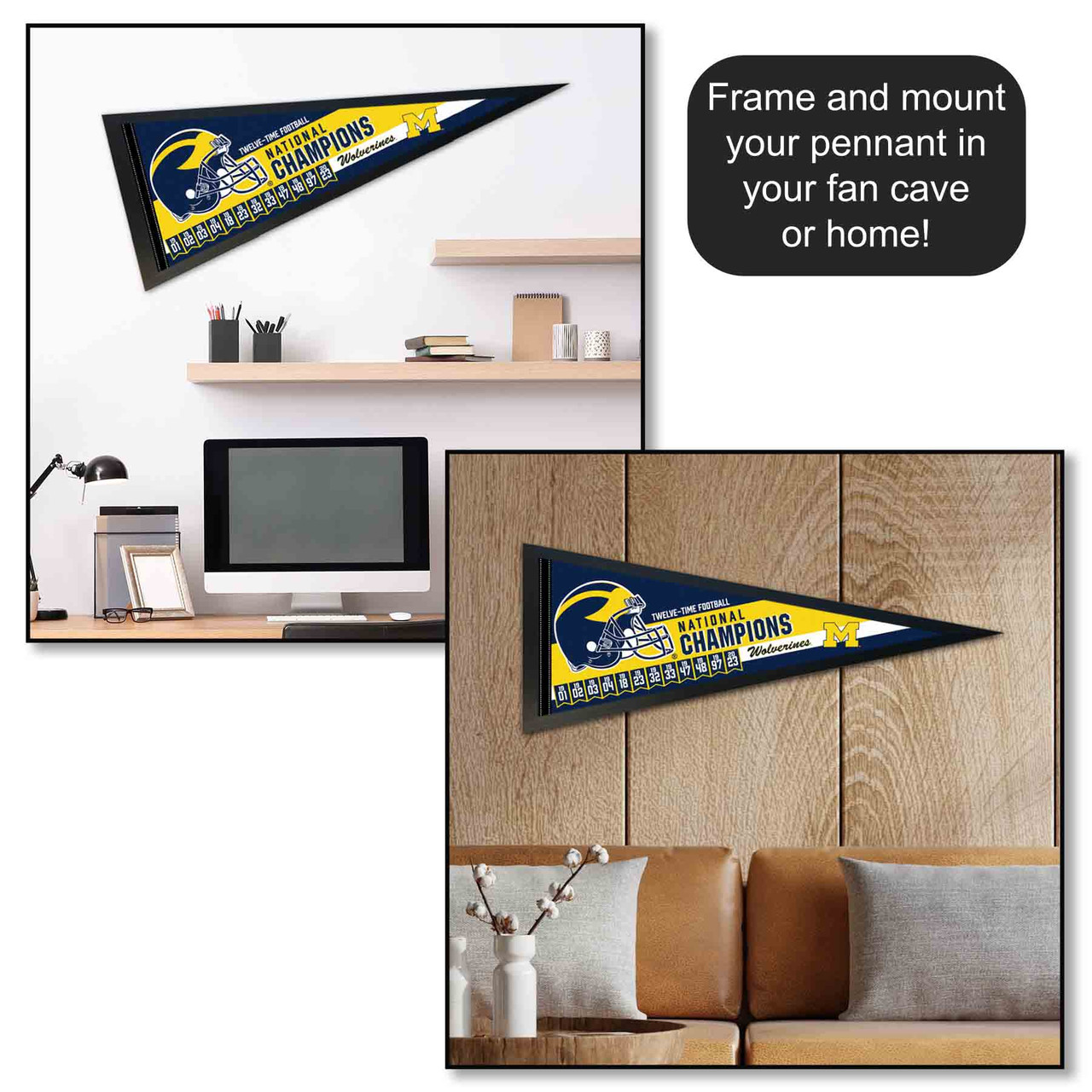 Michigan Team University Wolverines 12 Time Football National Champions Pennant