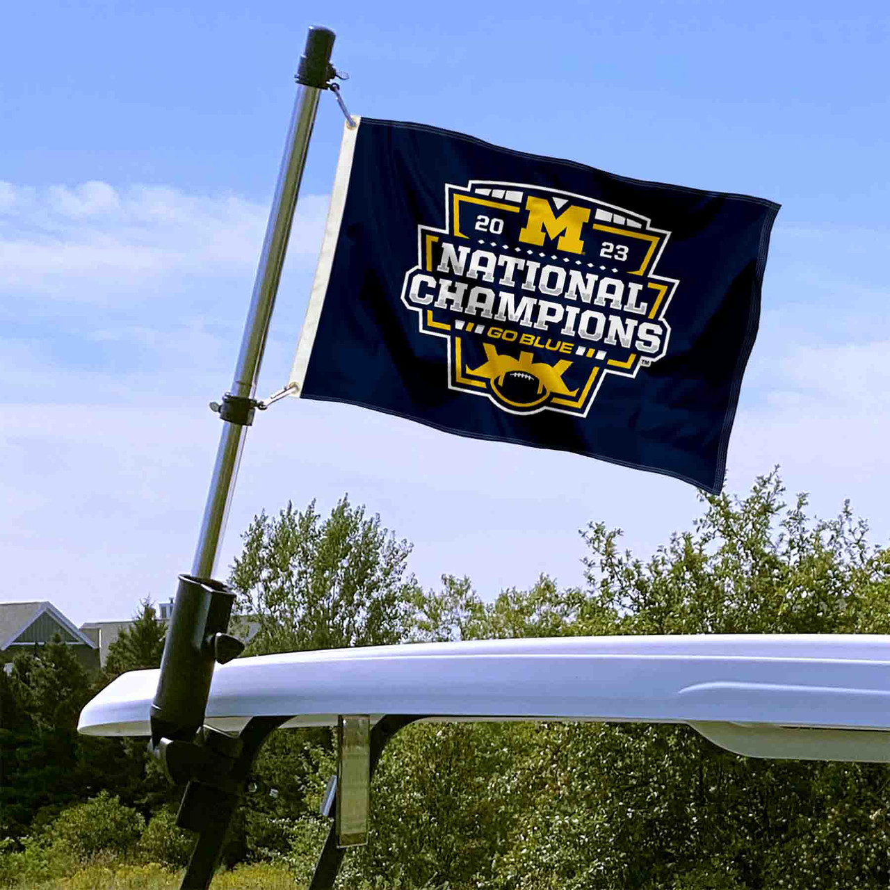 Michigan Team University Wolverines Football 2023 CFP National Champions Boat and Mini Flag