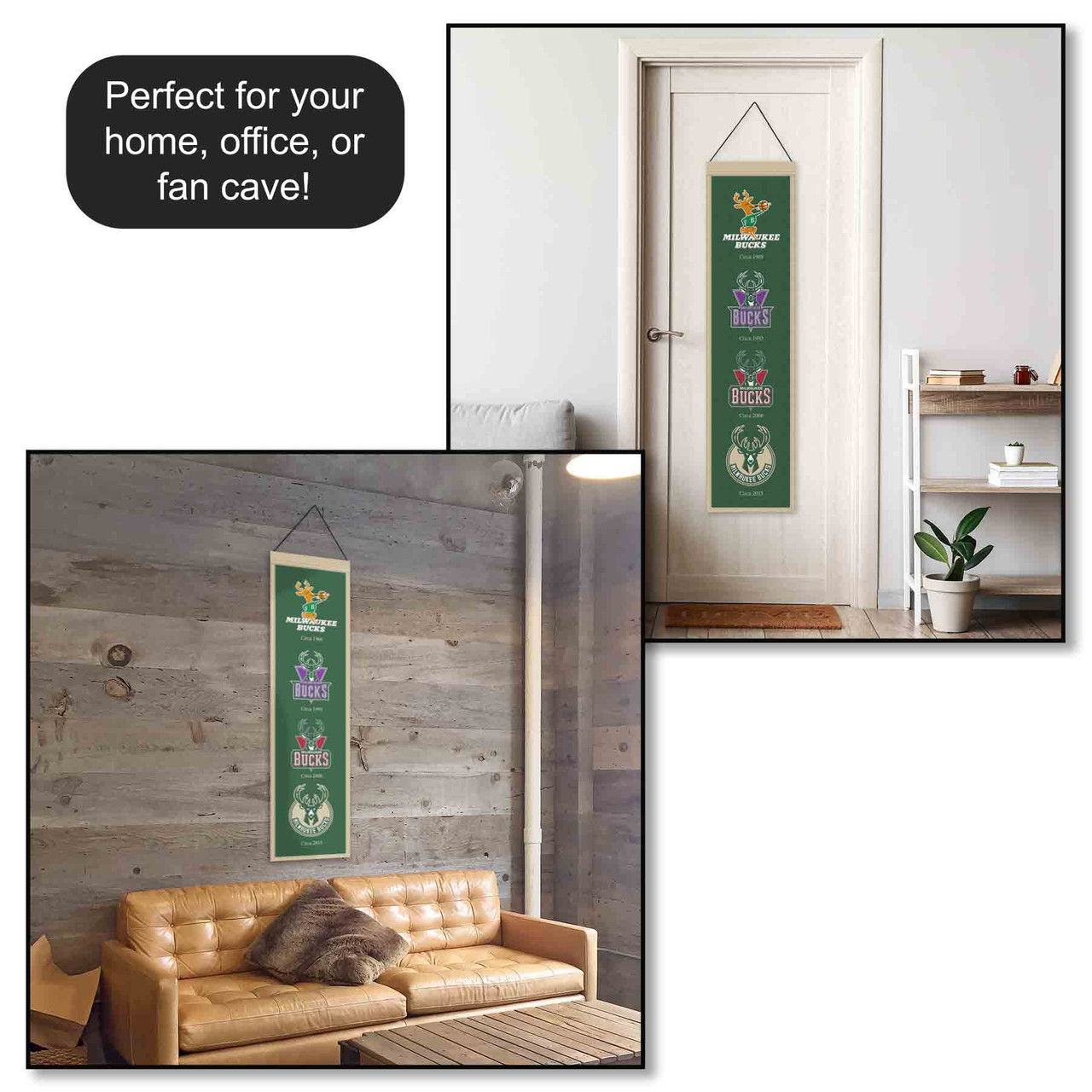 Milwaukee Bucks Evolution 8x32 Inch Vertical Wool Embroidered Hanging Banner