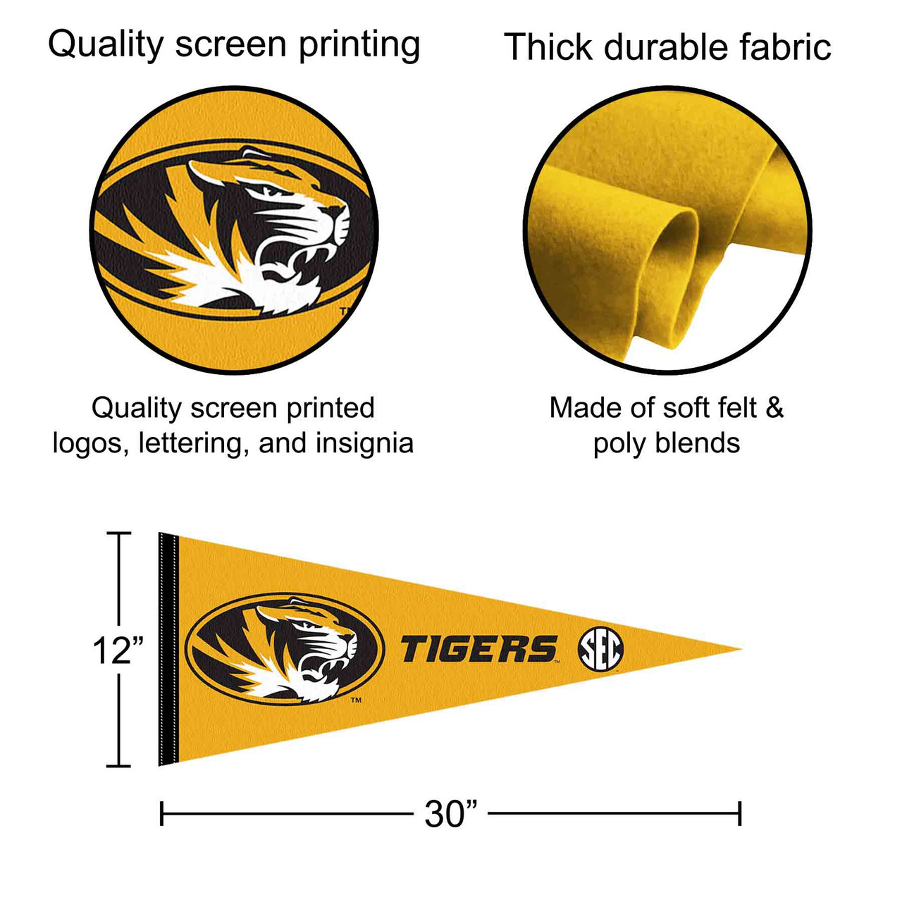 Our Pennant Flag is a great way to show your college allegiance in your sports room, game room, office, bedroom, or any room by displaying as a wall banner. These pennants measure 12 in X 30 in, are made of Felt, and are single-sided Screen Printed with Tigers insignias and logos. Each Flag, Banner or Pennant is Officially Licensed and Team, College, or University Approved approved which insures current insignias, wordmarks, and authentic colors. These pennants also include a sewn pennant stick sleeve on the left side which can be used to insert a pennant stick, if desired.