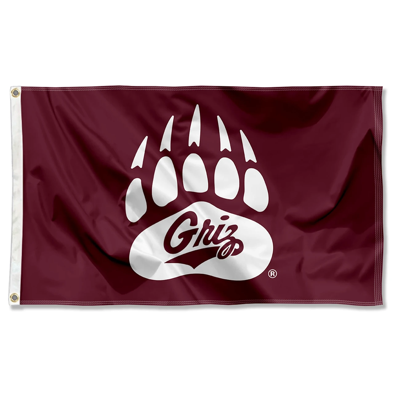 This Flag, Banner, or Pennant measures 3 ft x 5 ft in size, has Quadruple Stitched fly ends, is made of 150D Polyester, and has two Metal Grommets for attaching to your flagpole or tailgating flag pole. The Screen Printed Montana Griz Championship logos are Officially Licensed by Sewing Concepts, Inc. and Officially Licensed and College, University, or Team Approved. The champs team logos, words, and insignia are Viewable from Both Sides (Opposite Side is a Reverse Image).