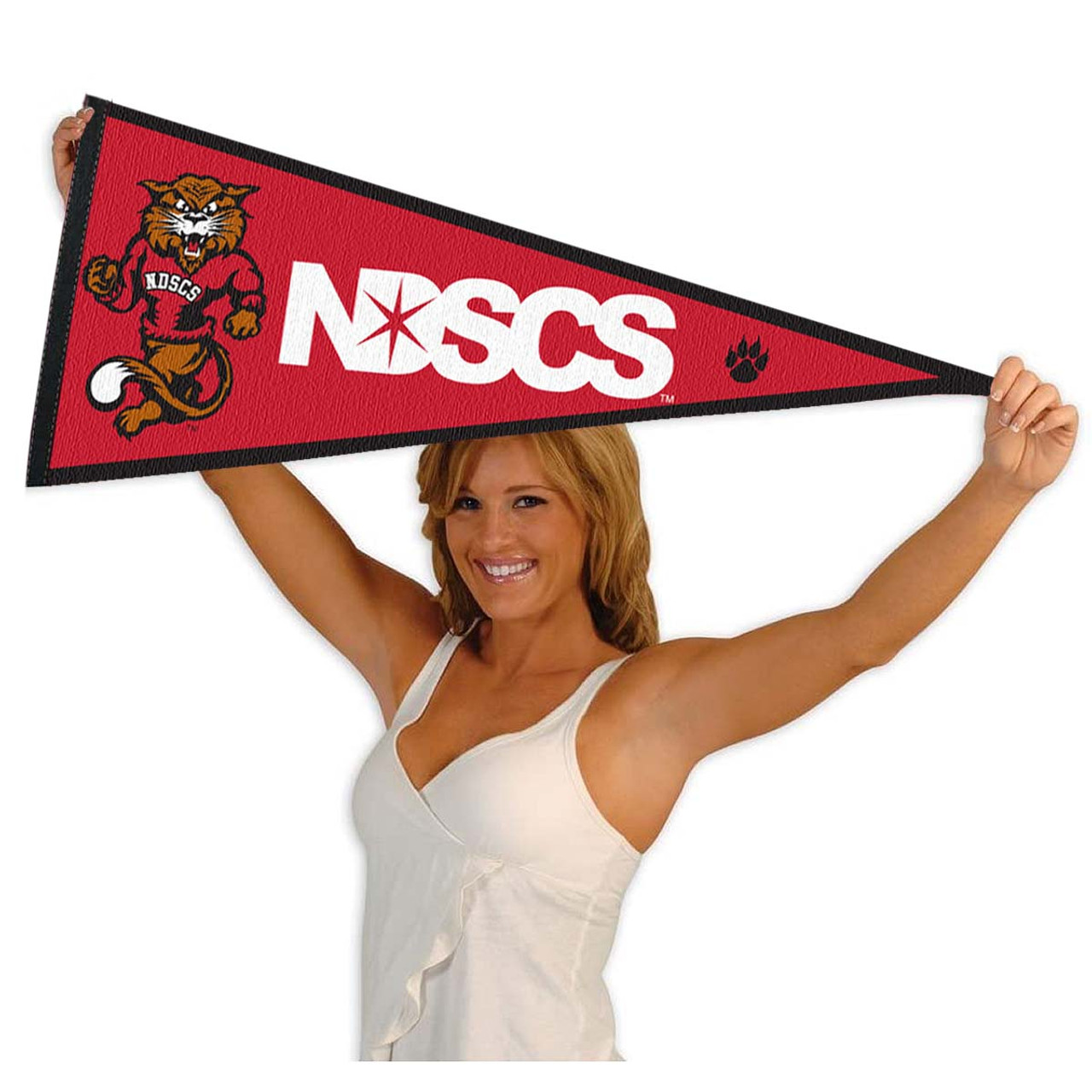 Our Flag, Banner or Pennant is a great way to show your college allegiance in your sports room, game room, office, bedroom, or any room by displaying as a wall banner. These pennants measure 12 in X 30 in, are made of Felt, and are single-sided Screen Printed with NDSCS insignias and logos. Each Flag, Banner or Pennant is Officially Licensed and Team, College, or University Approved approved which insures current insignias, wordmarks, and authentic colors. These pennants also include a sewn pennant stick sleeve on the left side which can be used to insert a pennant stick, if desired.