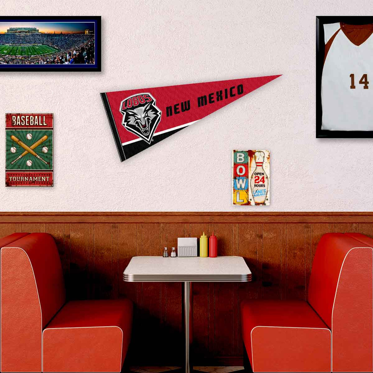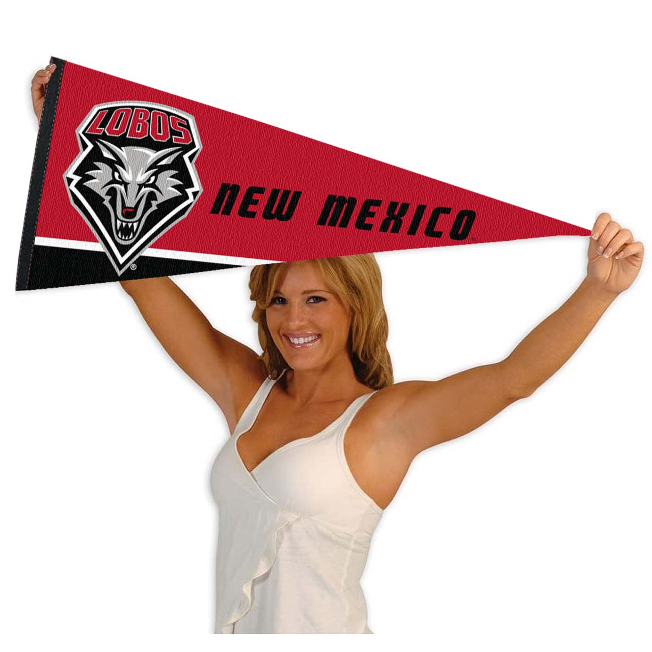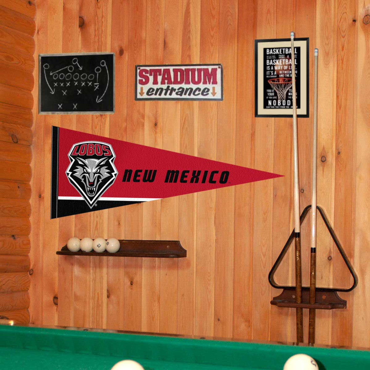 Our New Mexico Lobos Pennants are an easy way to show your college team allegiance in your sports room, game room, office, bedroom, or any room by displaying on any wall. These college pennants measure a full size 12x30 inches, are made of felt, and are single-sided screen printed with the school insignias and logos, as shown. Each University New Mexico Pennant Full Size Felt is Officially Licensed by the selected team and University New Mexico which insures current school insignias, wordmarks, and authentic college colors. The League pennants also include a pennant sleeve on the left side which can be used to insert a pennant stick, if desired.
