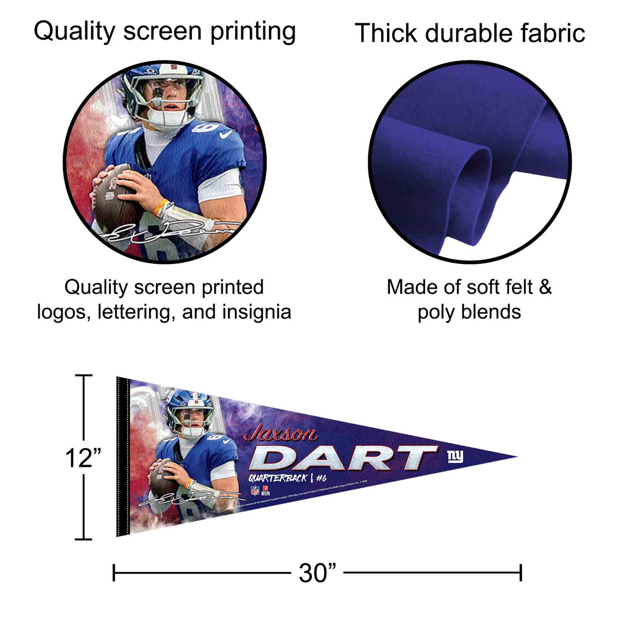 - 12 in X 30 in Full Size Large Team Pennant