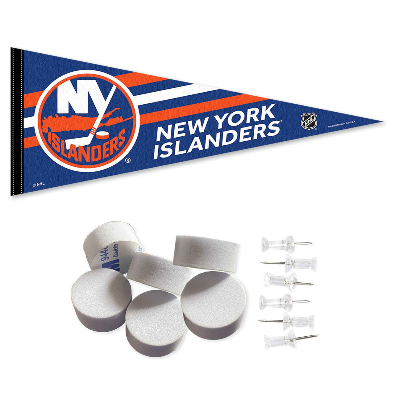 - Banner includes 12 in X 30 in Full Size Team Pennant and 6 adhesive pads and 6 clear tacks for displaying on any wall