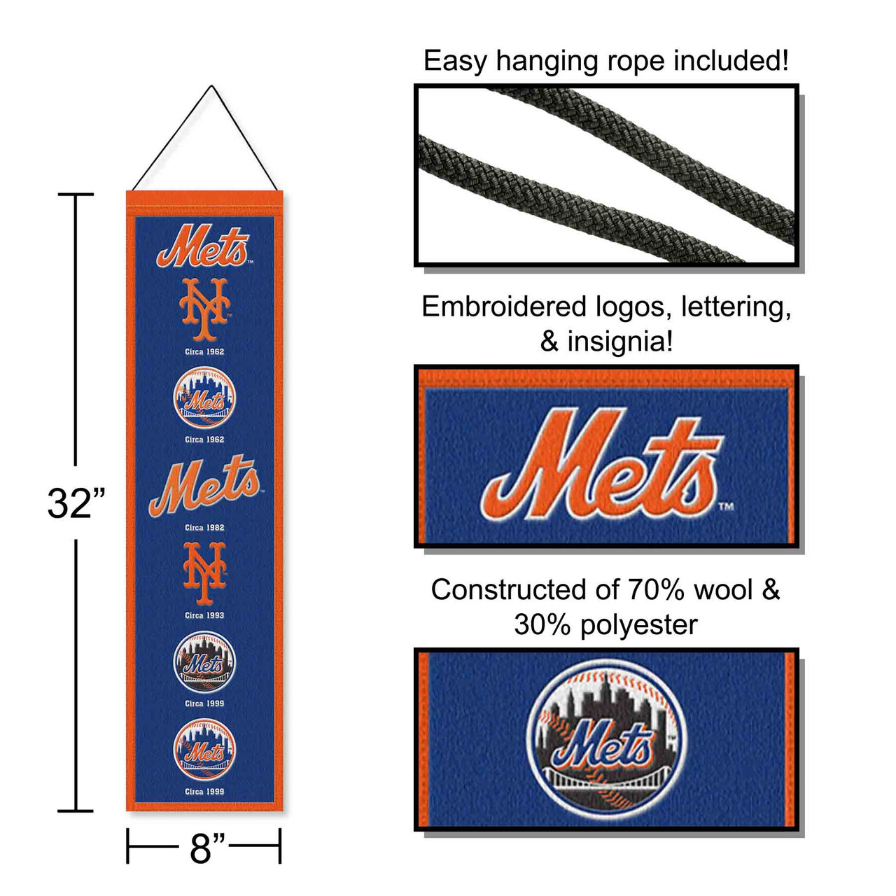 New York Mets Evolution 8x32 Inch Vertical Wool Embroidered Hanging Banner