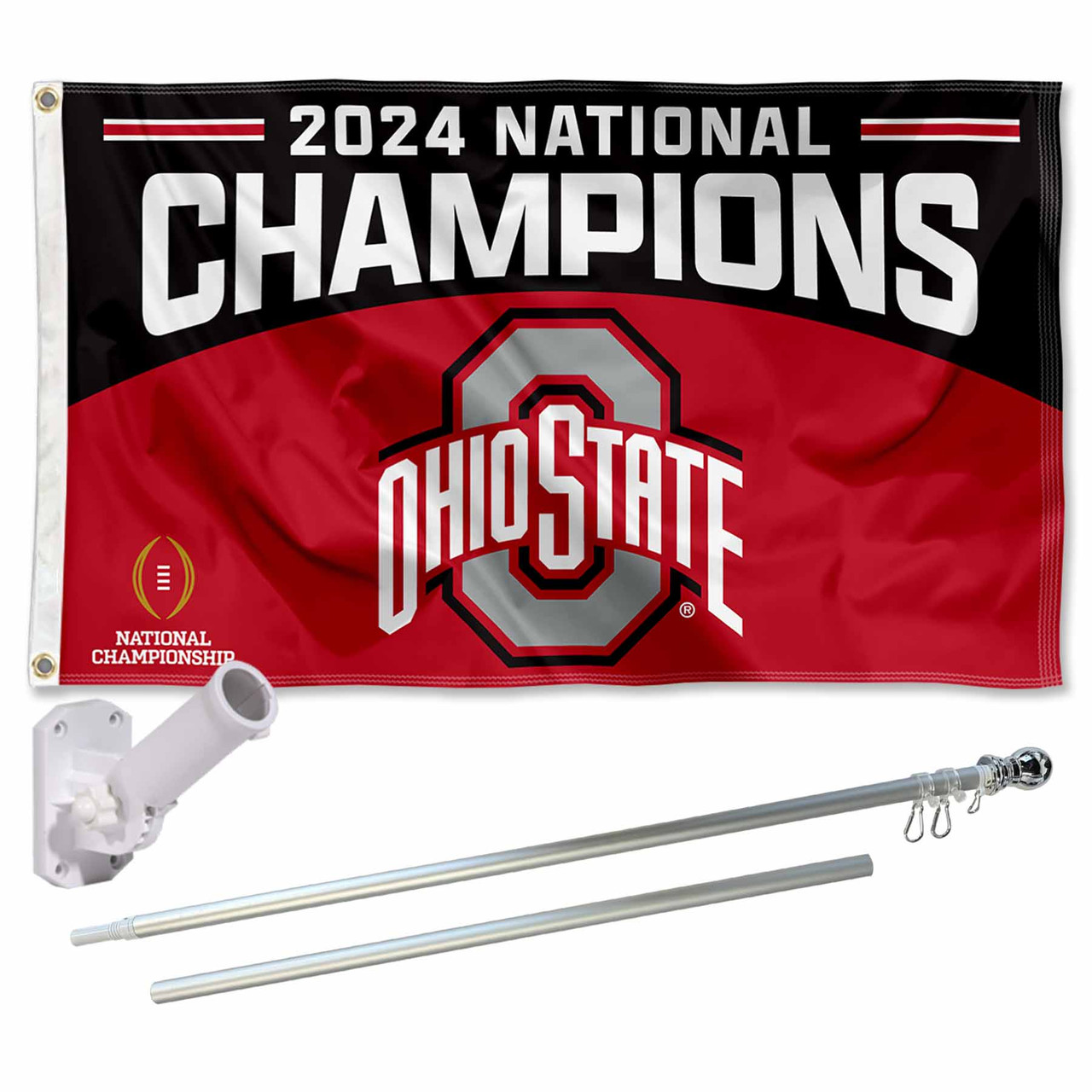 Ohio State Buckeyes College Football 2024 National Champions Flag Pole and Bracket Kit