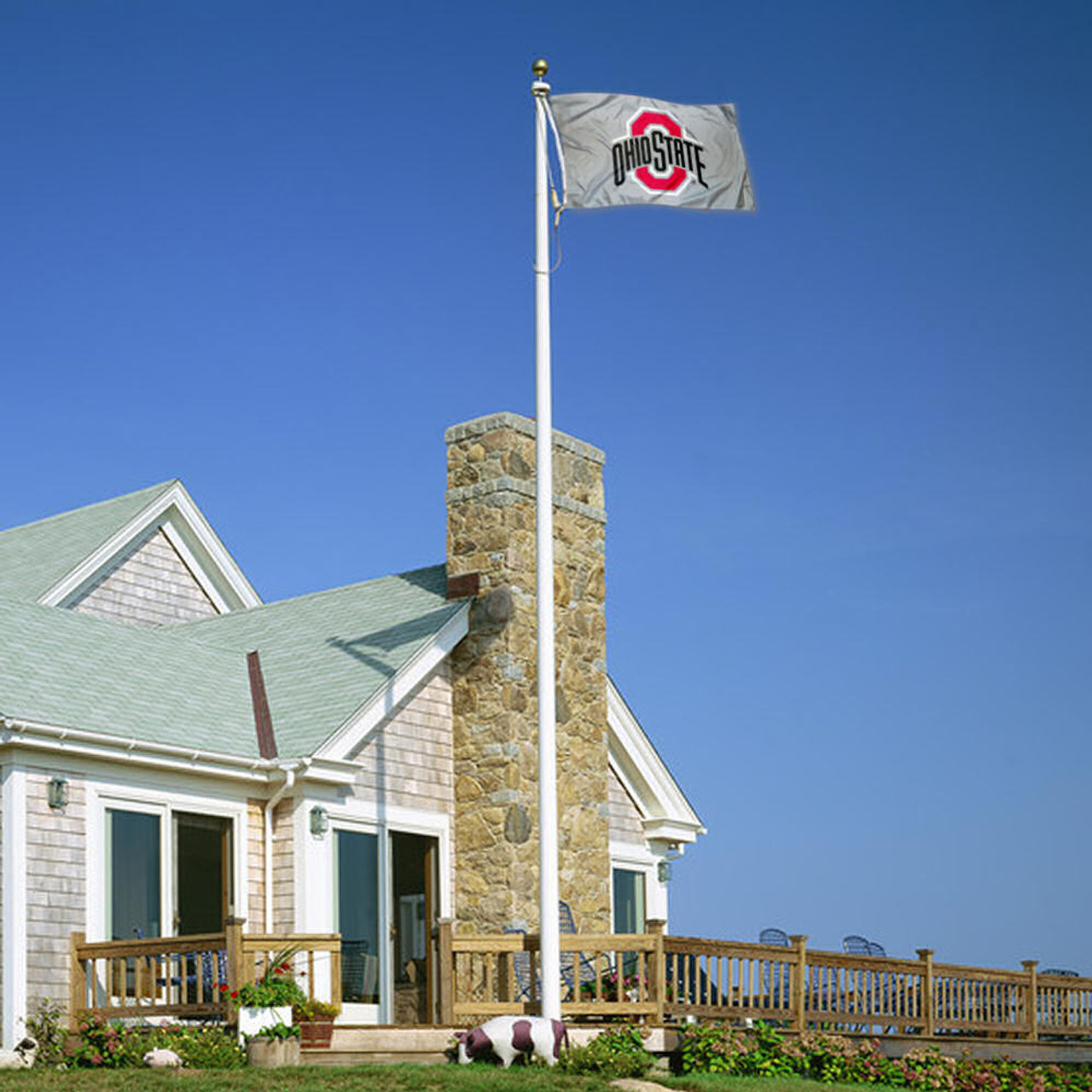 This Ohio State Flag measures 3x5 feet in size, has quadruple-stitched fly ends, is made of durable 100% Nylon, and has two metal grommets for attaching to your flagpole. The screen printed Buckeyes logos are Officially Licensed and Approved by the University and are viewable from both sides with the opposite side being a reverse image.
