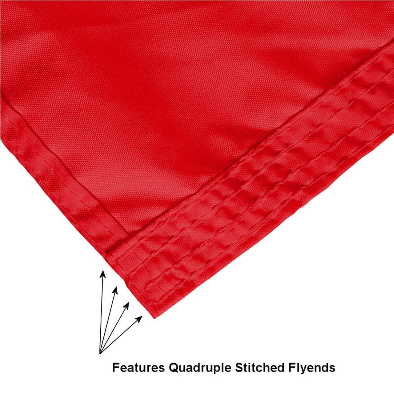 - Flag is made of 1-Ply 100% Polyester, has Quad-Stitched Flyends, and Screen Printed Logos (opposite side is reverse image)