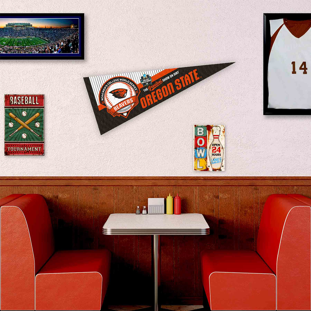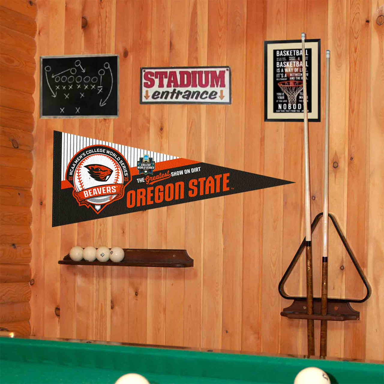 Our Pennant Flag is a great way to show your college allegiance in your sports room, game room, office, bedroom, or any room by displaying as a wall banner. These pennants measure 12 in X 30 in, are made of Felt, and are single-sided Screen Printed with Beavers insignias and logos. Each Flag, Banner or Pennant is Officially Licensed and Team, College, or University Approved approved which insures current insignias, wordmarks, and authentic colors. These pennants also include a sewn pennant stick sleeve on the left side which can be used to insert a pennant stick, if desired.