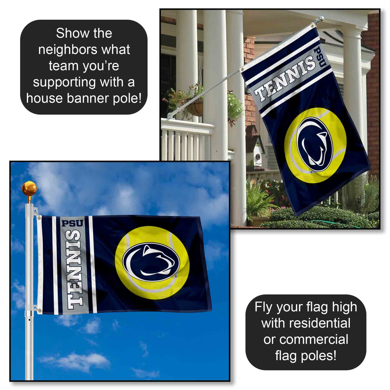 This Flag, Banner, or Pennant measures 3 ft x 5 ft in size, has Quadruple Stitched fly ends, is made of 150D Polyester, and has two Metal Grommets for attaching to your flagpole or tailgating flag pole. The Screen Printed PSU Nittany Lions Championship logos are Officially Licensed by Sewing Concepts, Inc. and Officially Licensed and College, University, or Team Approved. The champs team logos, words, and insignia are Viewable from Both Sides (Opposite Side is a Reverse Image).