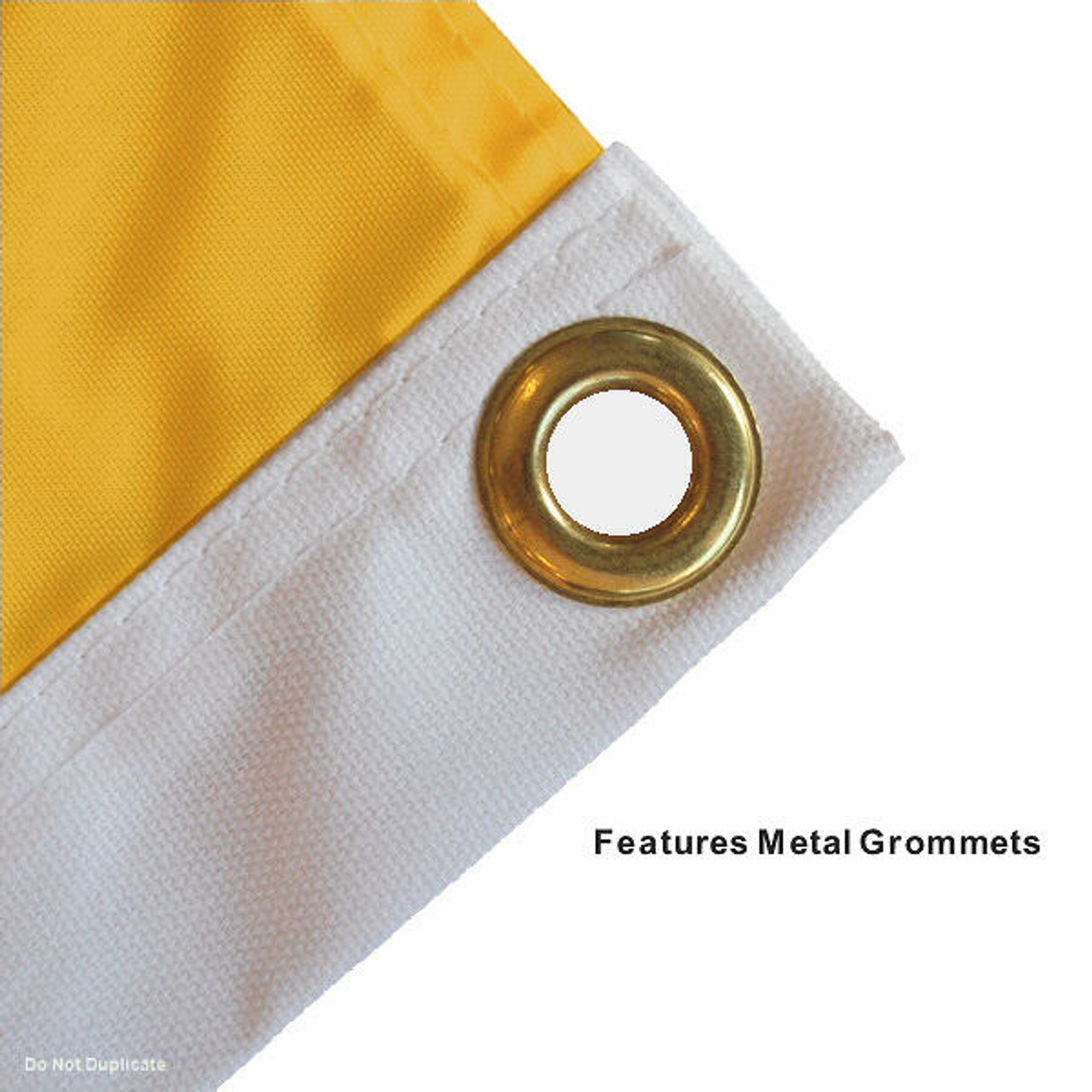 Our Flag, Banner or Pennant and Nation Banner measures 3 ft x 5 ft in Size, has a Double Stitched Perimeter, offers Quadruple Stitched Flyends for extra durability, is made of Single-Ply Polyester, and has 2 Metal Grommets for attaching this Nation Flag to your Flagpole or Tailgate Pole. These Outdoor Large Flags are Officially Licensed and Team, College, or University Approved Approved and the Screen Printed logos are Viewable from Both Sides (Opposite Side is a Reverse Image).