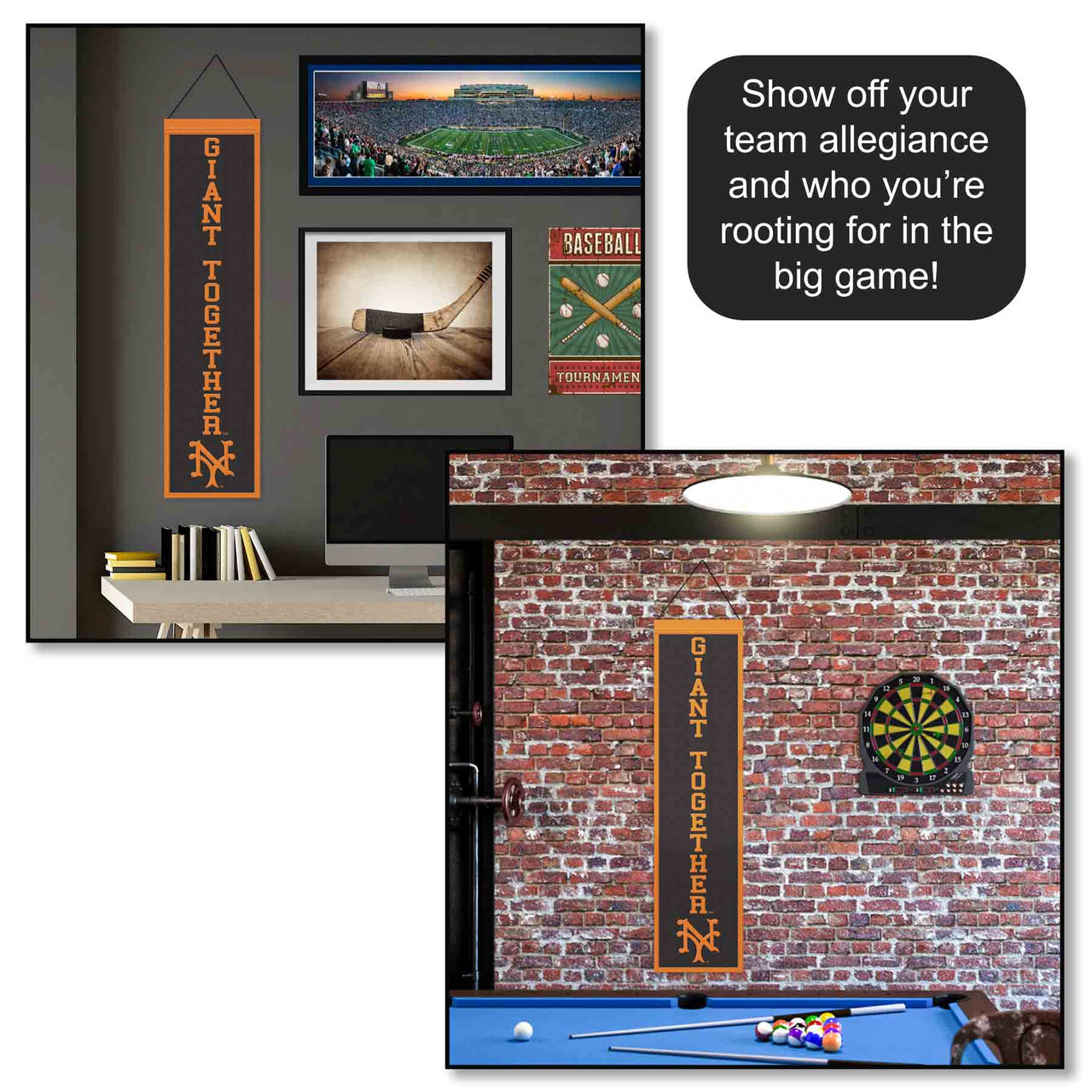 San Francisco Giants Vintage Giant Together 8x32 Inch Vertical Wool Embroidered Hanging Banner