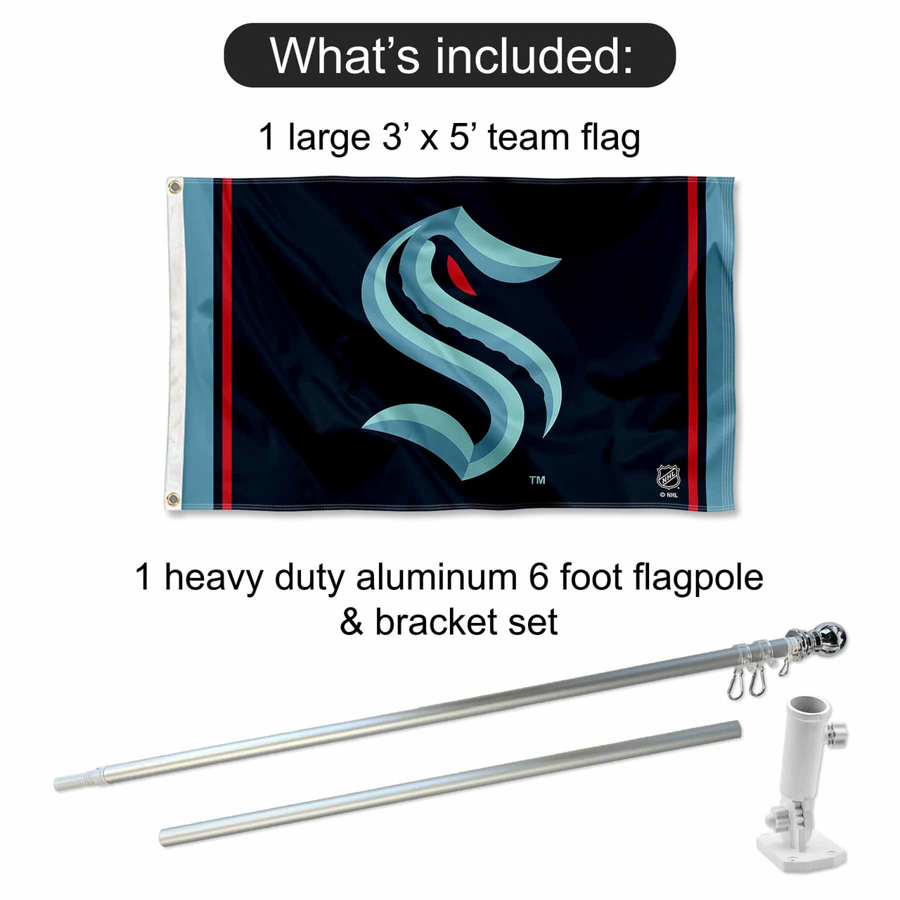 Seattle Kraken Wordmark Flag Pole and Bracket Kit