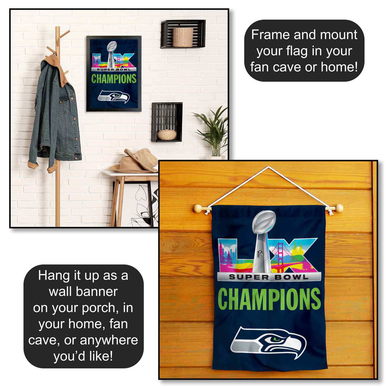 Seattle Seahawks 2026 Super Bowl LX Champions Garden Banner Flag