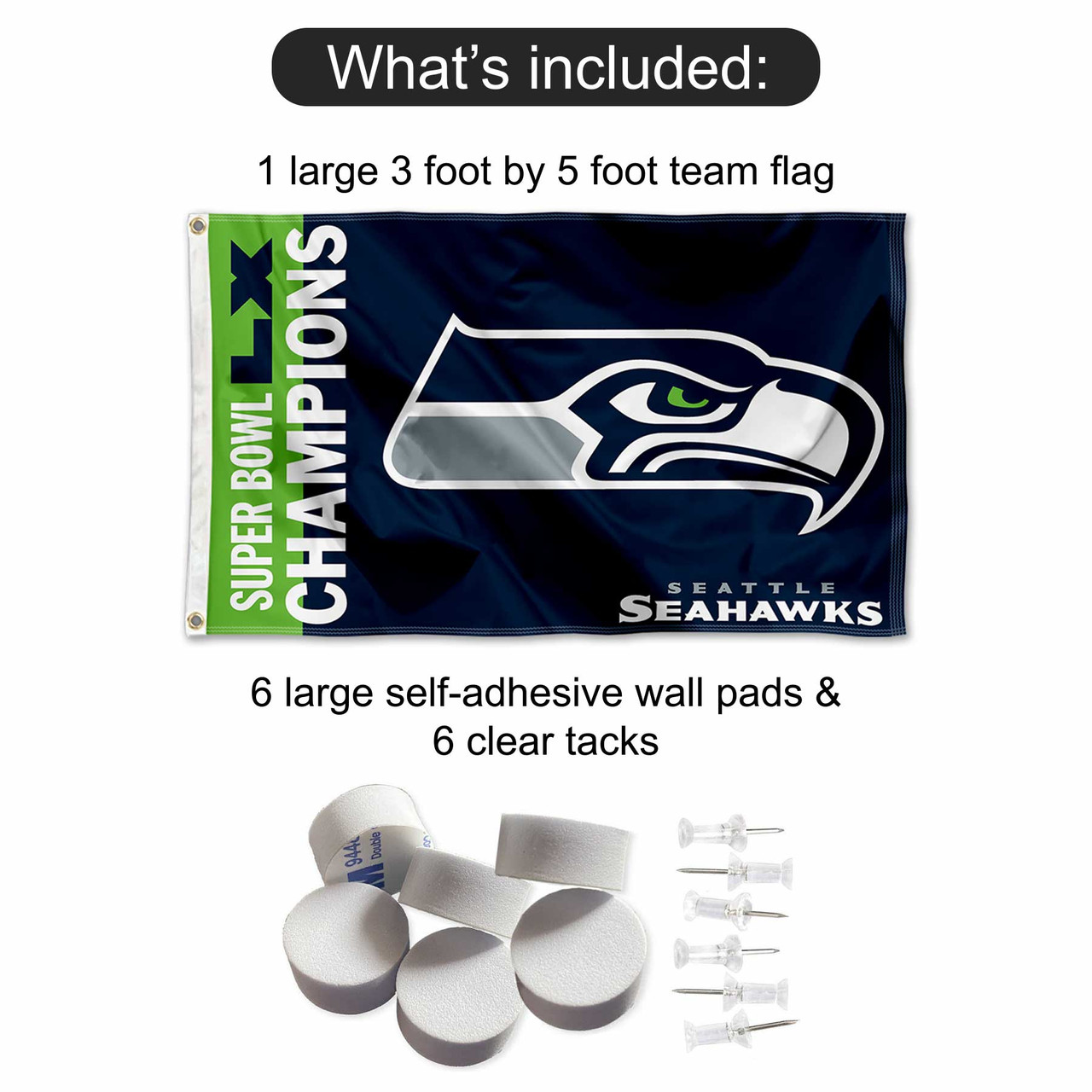 Seattle Seahawks Super Bowl Champions Banner Flag with Tack Wall Pads