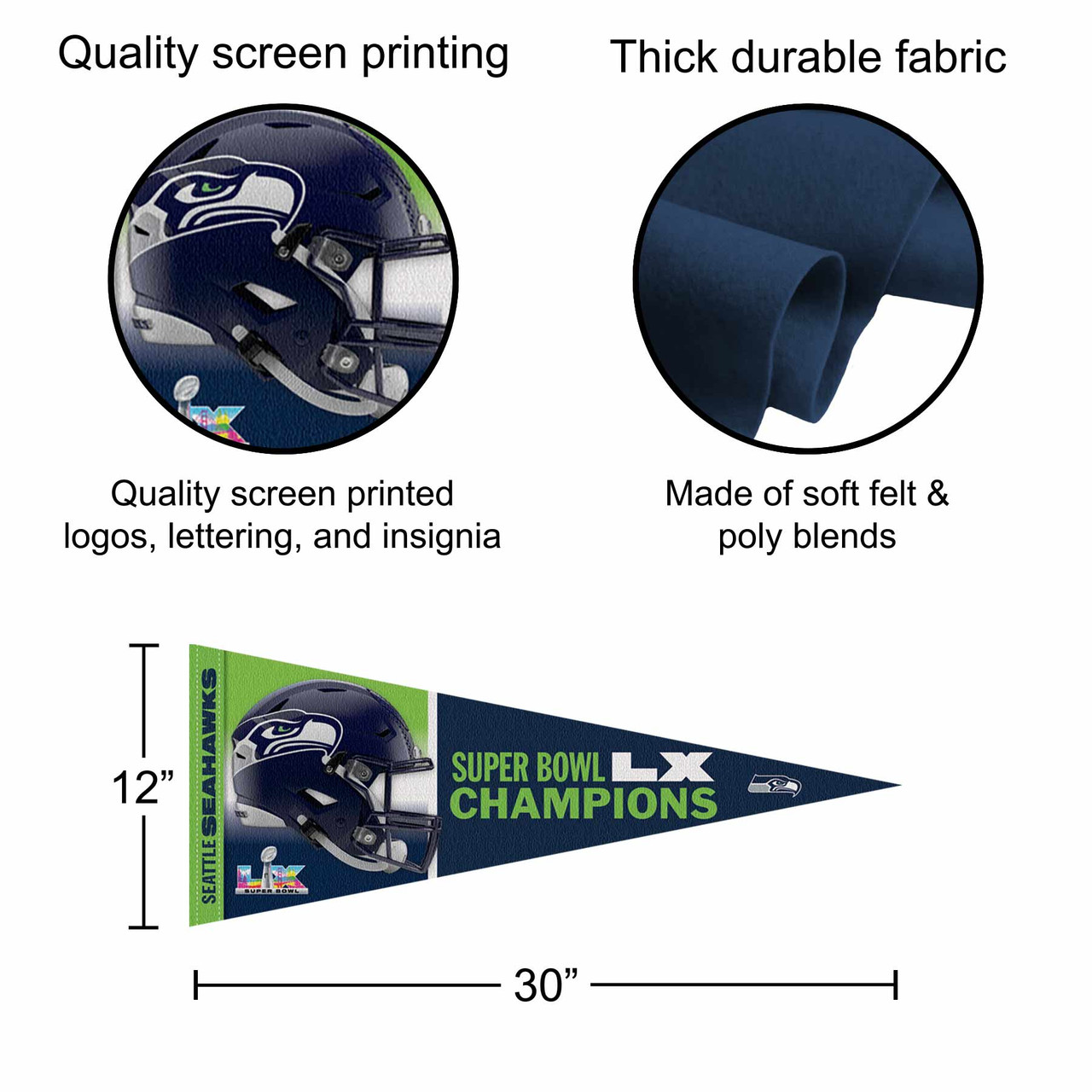 Seattle Seahawks Super Bowl LX Champions Pennant with Tack Wall Pads