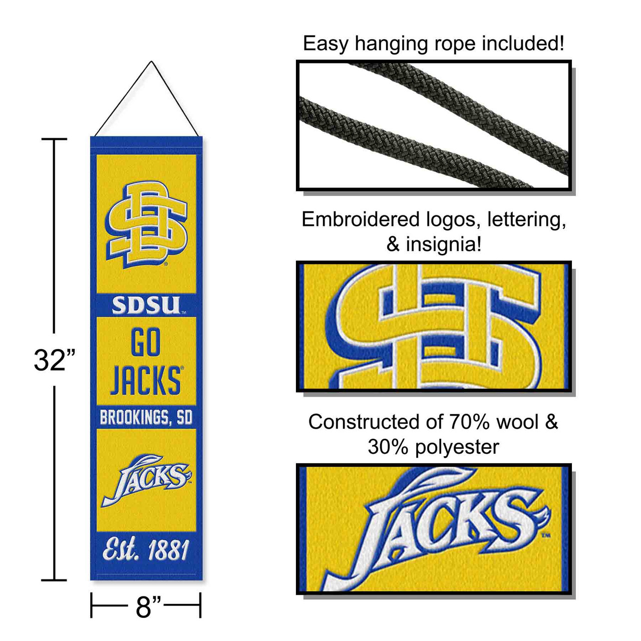 South Dakota State University Jackrabbits Evolution 8x32 Inch Vertical Wool Embroidered Hanging Banner