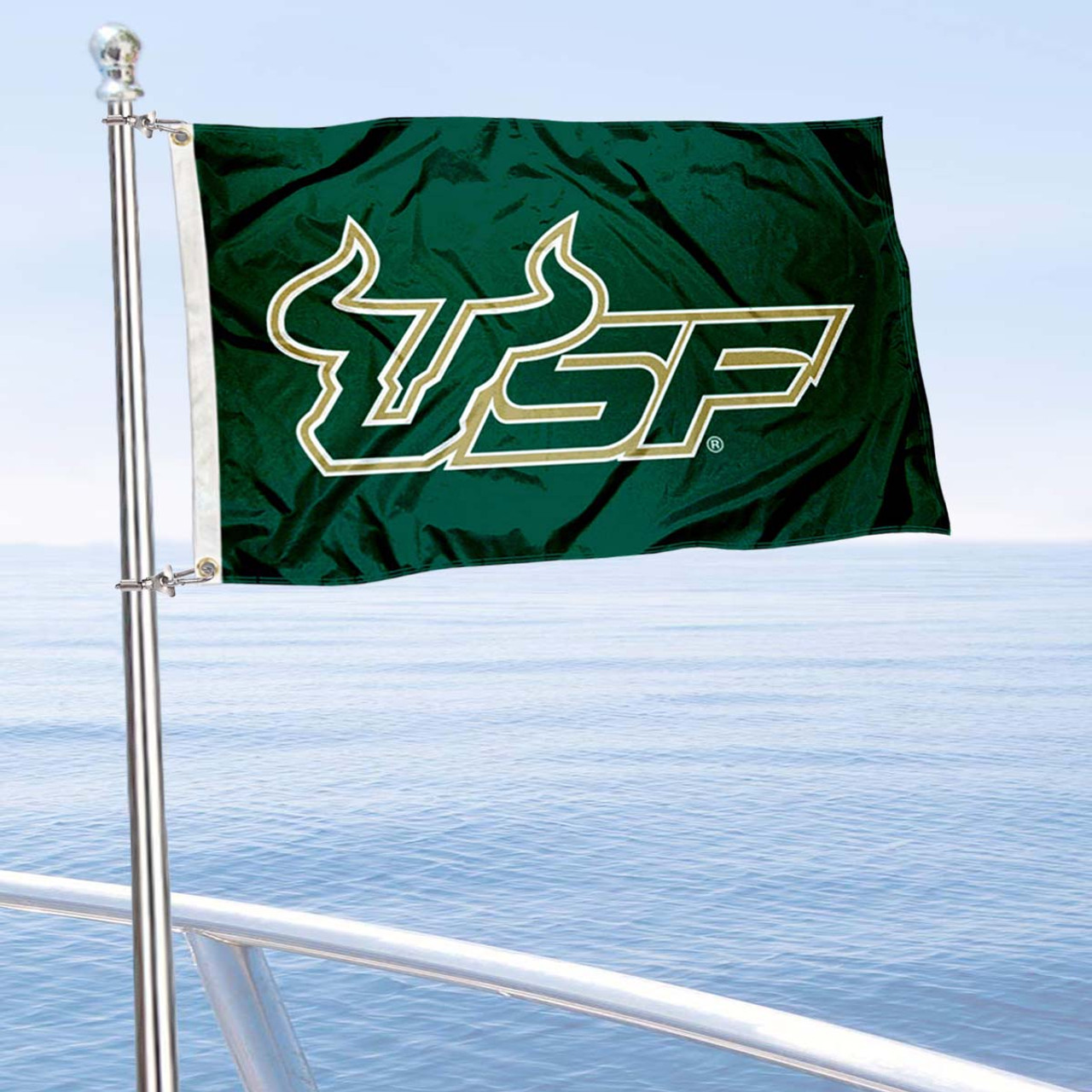 Our USF Bulls Golf Cart and Boat Flag measures 12x18 inches in size, has quadruple-stitched fly ends, is made of durable 2-ply double-sided polyester, and has two metal grommets for attaching to your boat mount, golf cart, motorcycle mount, or any of your uses. The screen printed South Florida Bulls logos are Officially Licensed and Approved by University South Florida and are viewable and readable correctly on both sides.