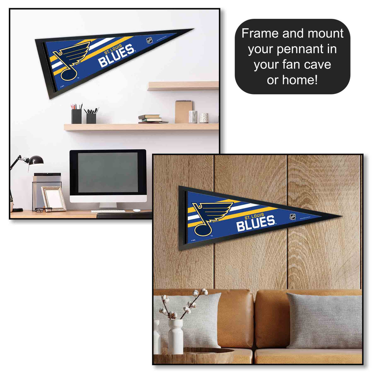 Our Flag, Banner or Pennant is a great way to show your League allegiance in your sports room, game room, office, bedroom, or any room by displaying on any wall. These Pennants measure a full size 12 in X 30 in, are made of Felt, and are single-sided Screen Printed with the insignias and logos, as shown. Each Flag, Banner or Pennant is Officially Licensed by the selected team which insures current insignias, wordmarks, and authentic colors. The League pennants also include a pennant sleeve on the left side which can be used to insert a pennant stick, if desired.